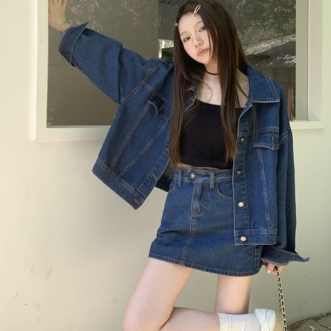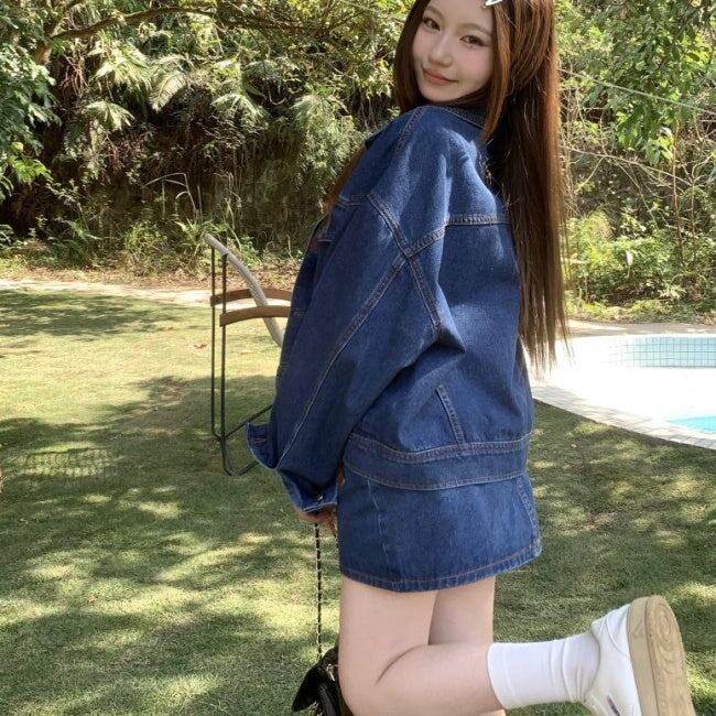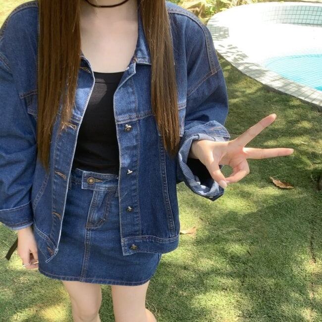 デニム セットアップ スカート レディース 韓国 ファッション デニムジャケット デニムスカート ブルー グリーンデニム 上下セット