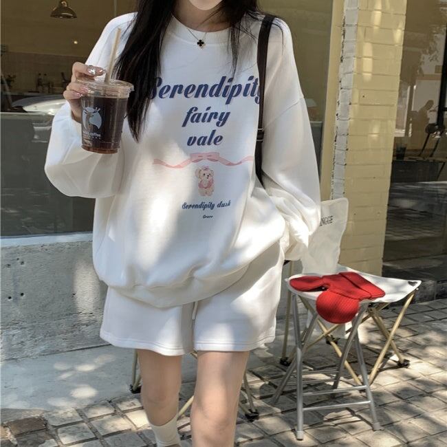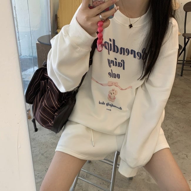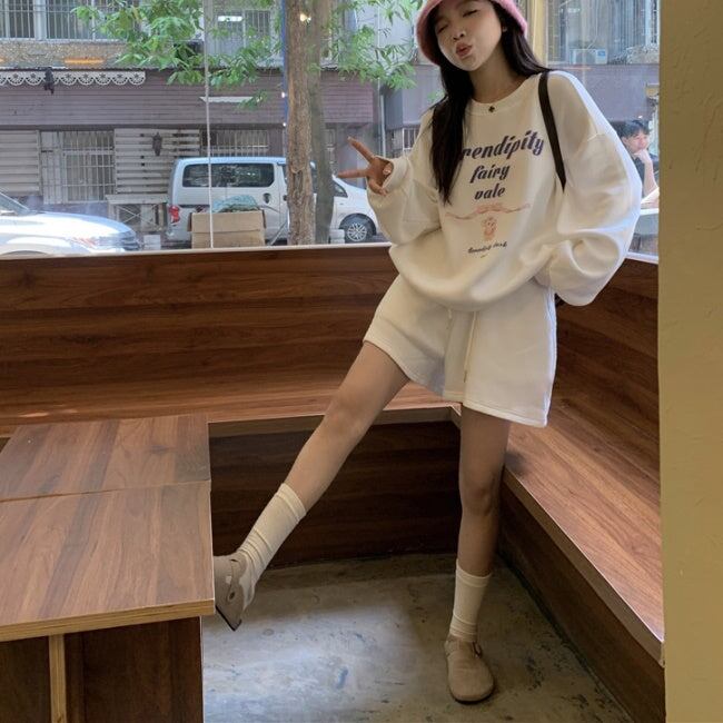 トレーナー セットアップ レディース 韓国 ファッション ハーフパンツ 春上下コーデ 長袖 Tシャツ ショートパンツ ロゴプリント シンプル ベーシック ラウンジ おしゃれ 大人カジュアル