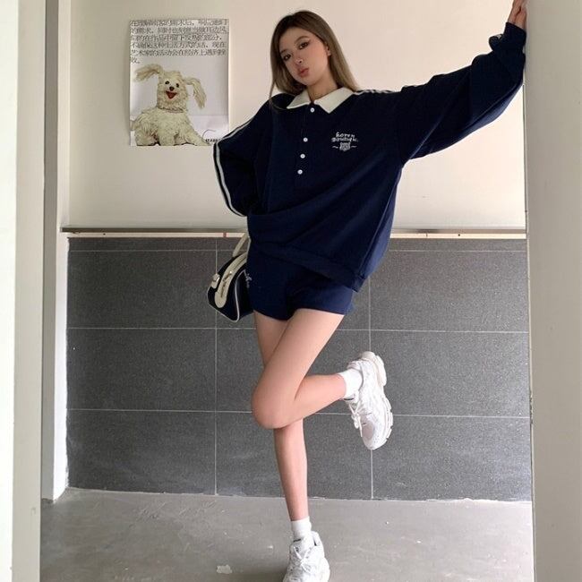セットアップ レディース スウェット ラガーシャツ ハーフパンツ 上下セット 韓国 ファッション トレーナー ショートパンツ ワントーンコーデ