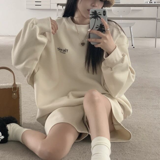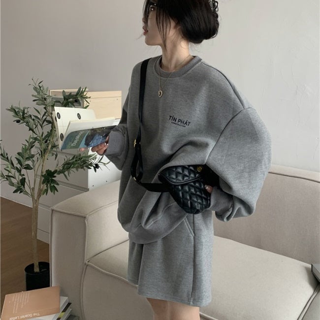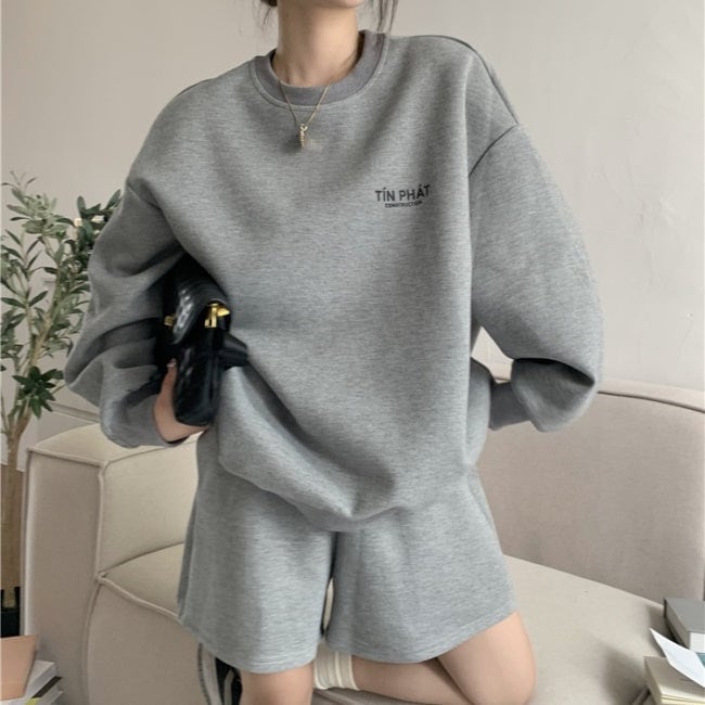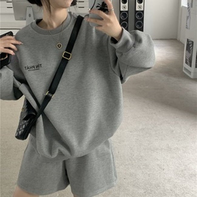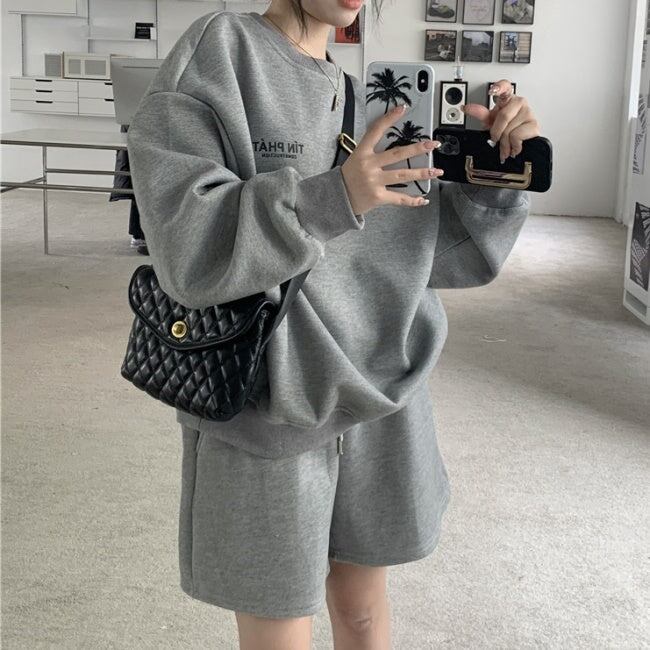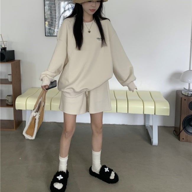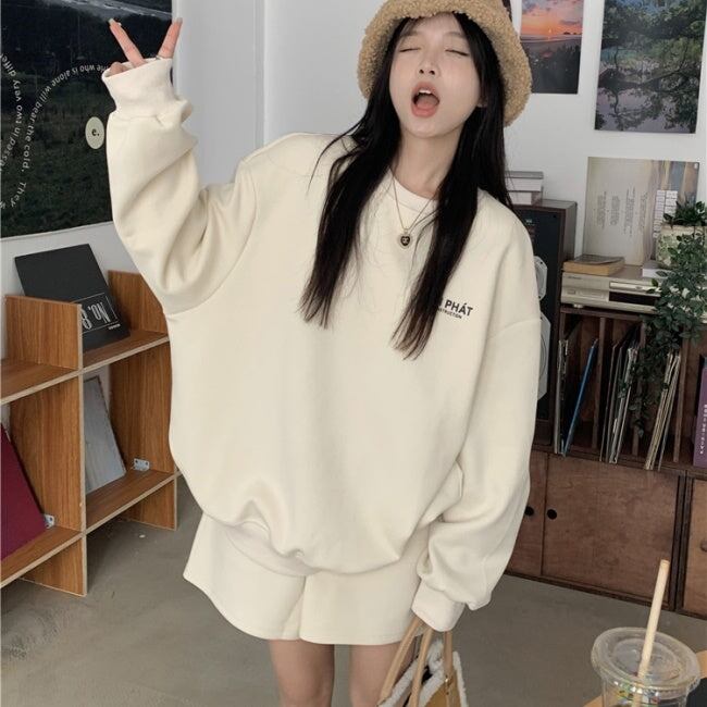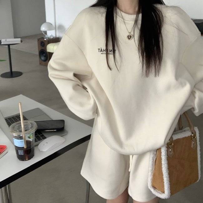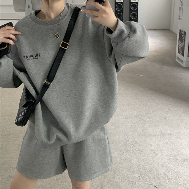 スウェット セットアップ レディース 韓国 ファッション 長袖トレーナー ショートパンツ ハーフパンツ 2点セット 上下 オフホワイト グレー
