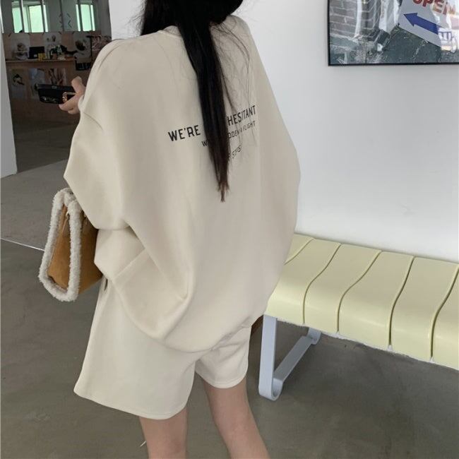 スウェット セットアップ レディース トレーナー & ショートパンツ 韓国 ファッション ハーフパンツ 上下セット オフホワイト グレー