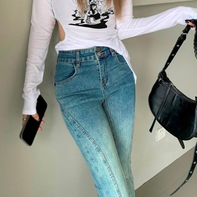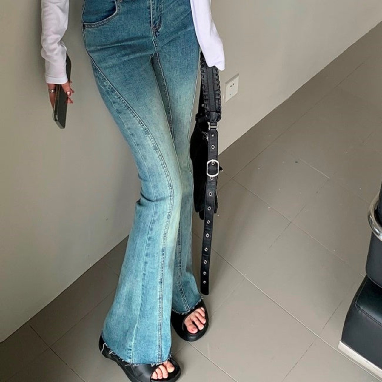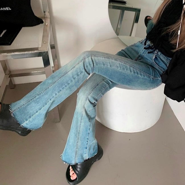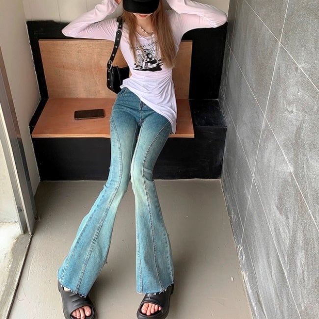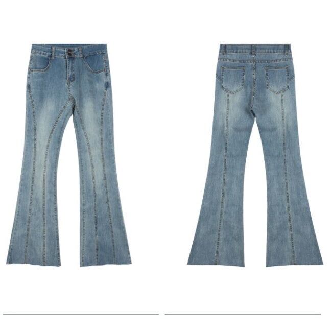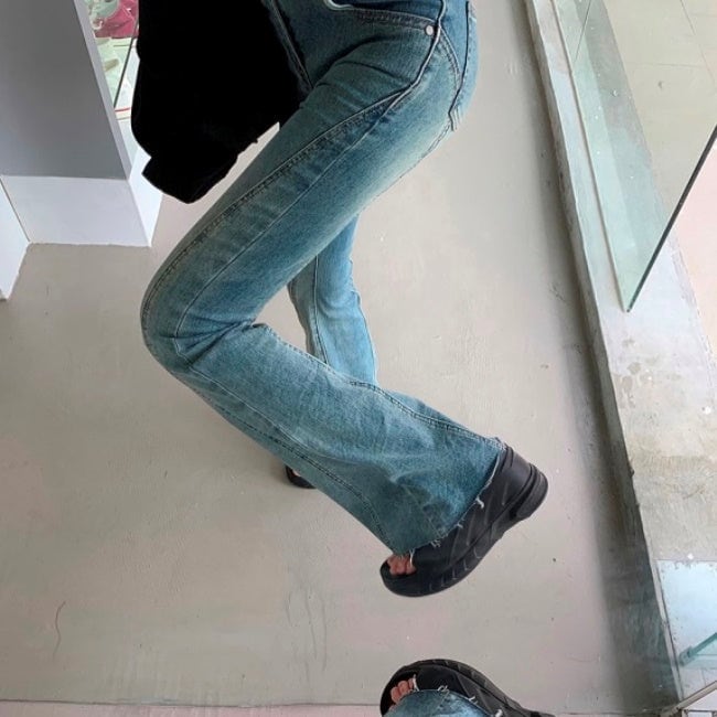 タイト フレア デニムパンツ レディース 韓国 ファッション きれいめジーンズ フロントステッチ デニム