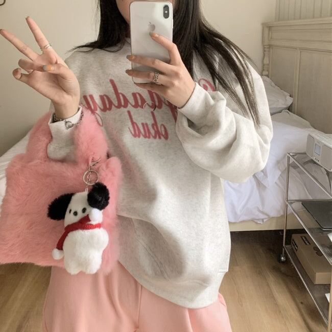スウェット トレーナー レディース 韓国 ファッション 大きめ ロゴ オーバーサイズ グレー トップス 長袖