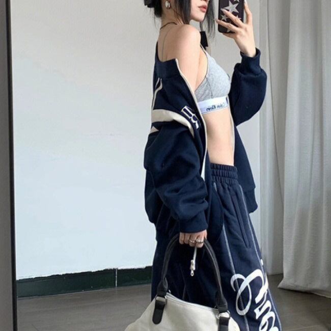 ロゴ ジャージ セットアップ レディース 韓国 ファッショントラックジャケット ワイドパンツ 上下セット カジュアル スポーツウェア