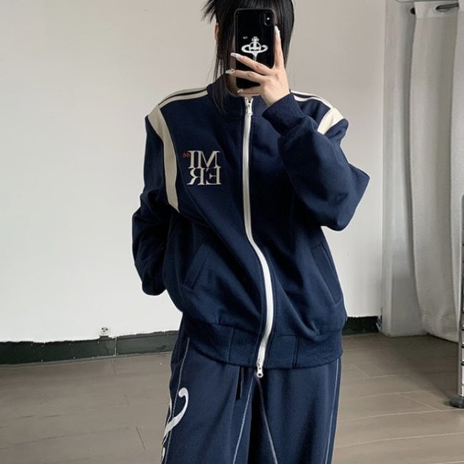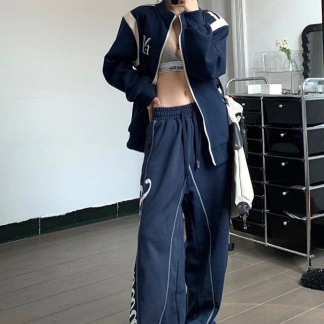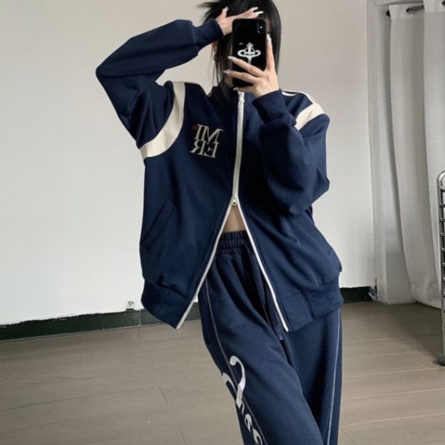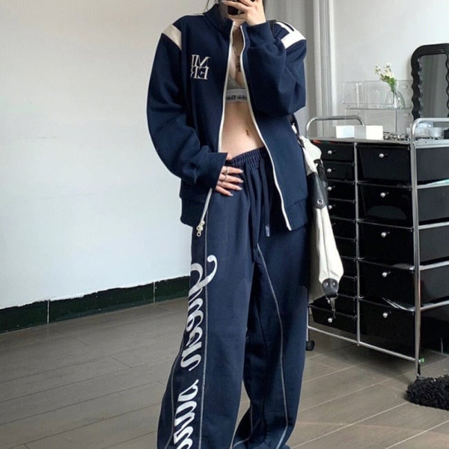 ジャージ セットアップ おしゃれ レディース 韓国 ファッション ジップアップ トラックトップ ワイドパンツ ジョガーパンツ おしゃれ ロゴ コントラスト