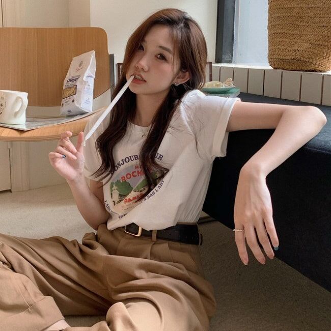 ナチュラルな雰囲気のプリントTシャツ♪半袖
