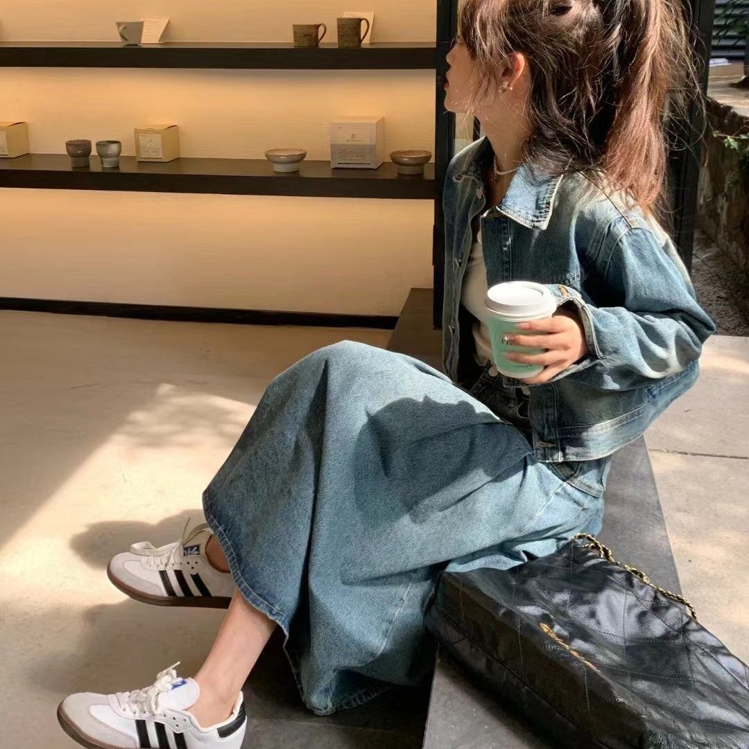 デニム セットアップ レディース 韓国 デニムジャケット デニム ロングスカート タック プリーツ Aライン スカート レトロ デニム 上下デニム