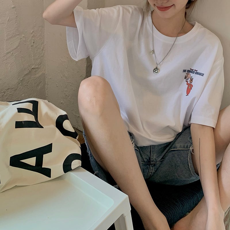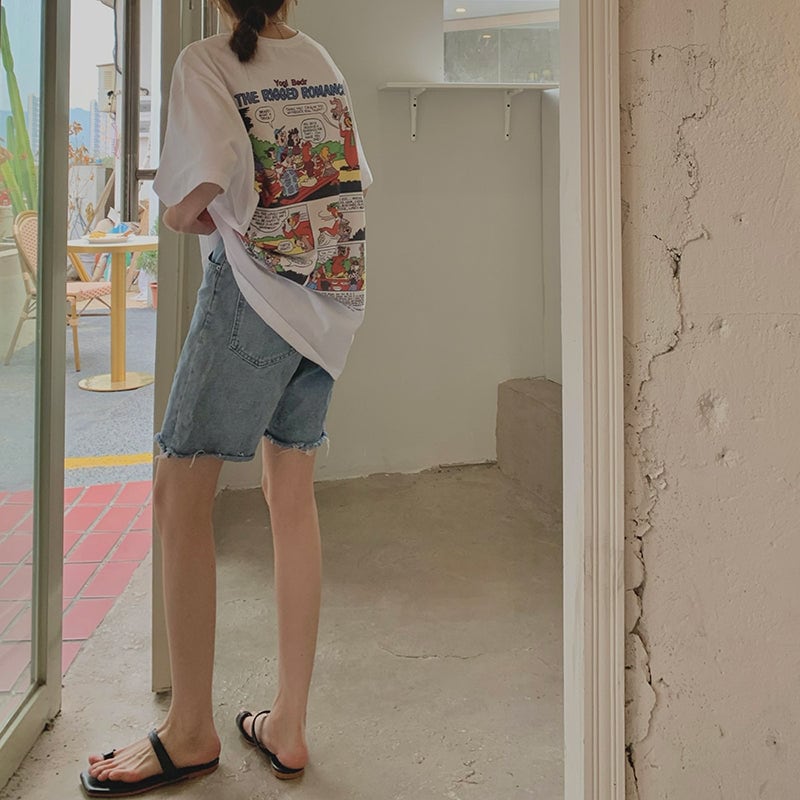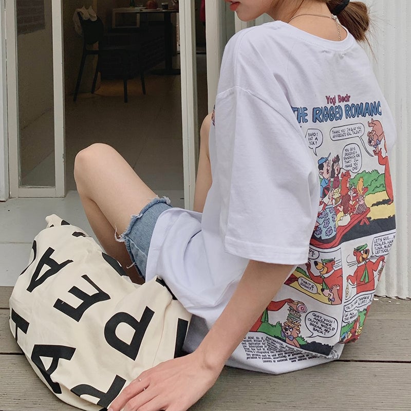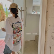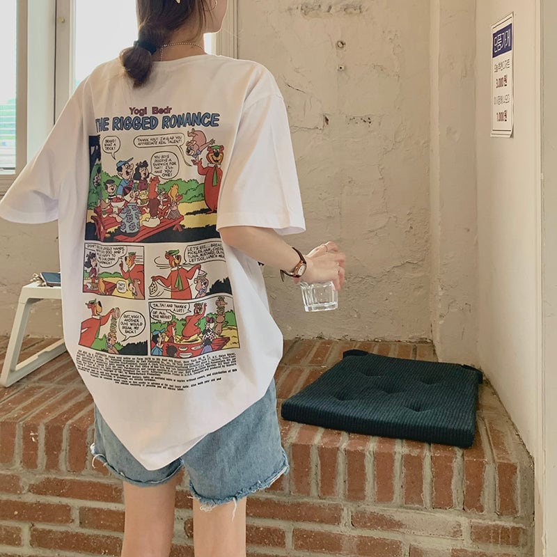 Tシャツ レディース バックプリント レディース 韓国 ファッション アメリカン コミック ビッグT 夏 トップス