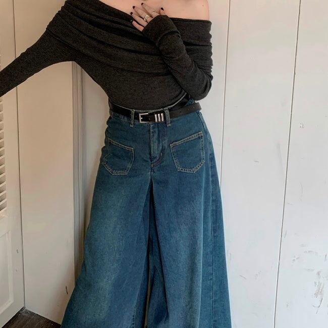 デニムパンツ ワイド フレア パンツ レディース 韓国 ファッション デニム ガウチョパンツ