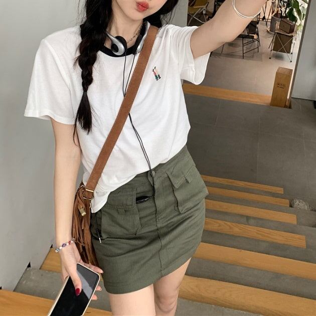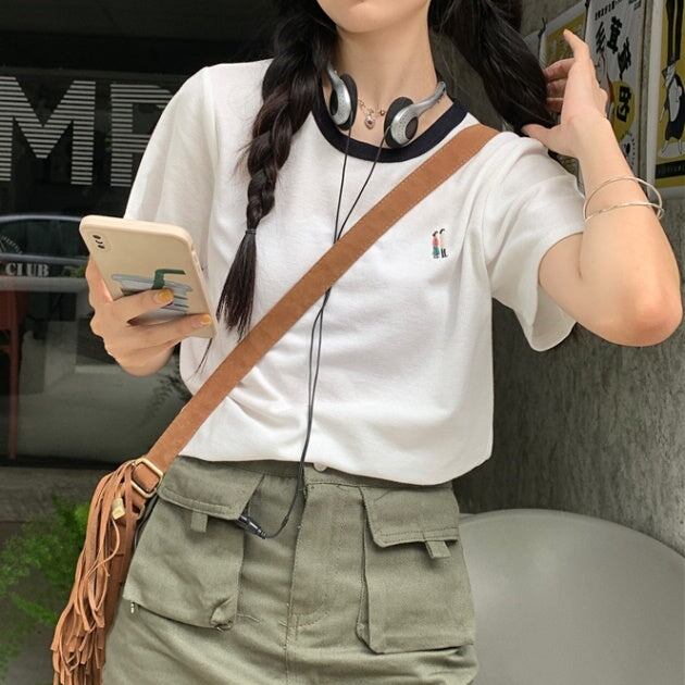 ワンポイント リンガーTシャツ レディース 韓国 シンプル 夏トップス バイカラー パイピング かわいい アクセント