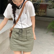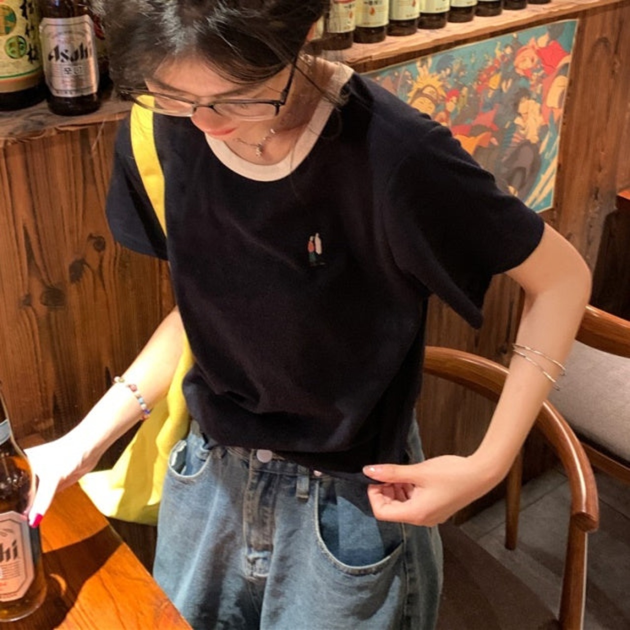ワンポイント Tシャツ レディース 韓国 ファッション 夏トップス バイカラー パイピング オーバーサイズ シンプル かわいい アクセント