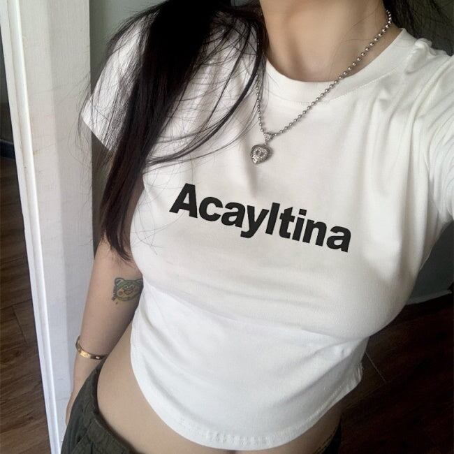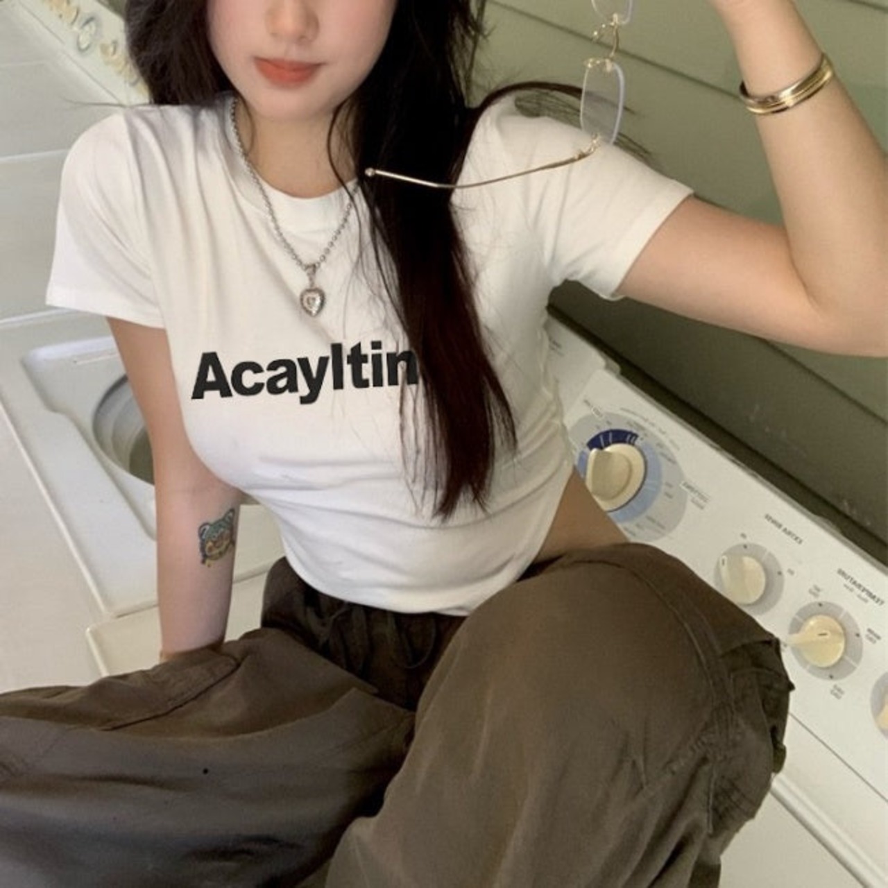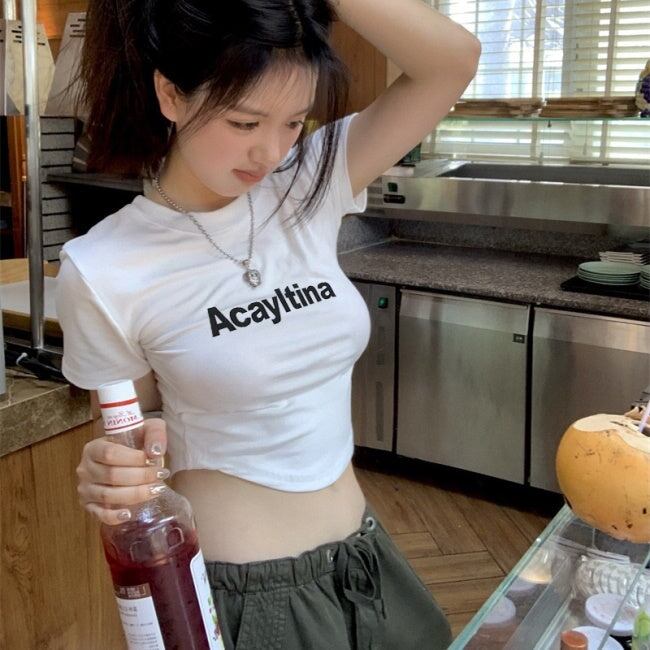 Tシャツ クロップド丈 レディース 韓国 ファッション半袖 夏 トップス ショート丈 ロゴ プリント タイトフィット ミニT