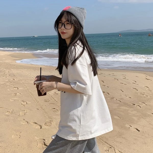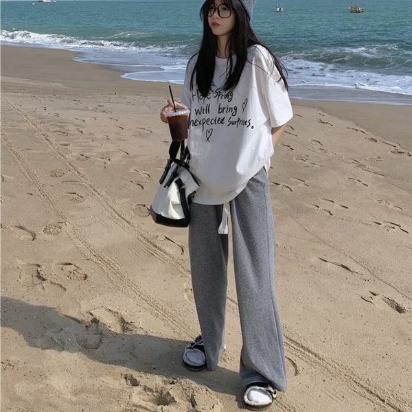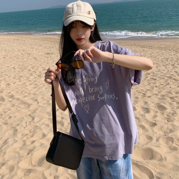 Tシャツ レディース 韓国 ハート メッセージ グラフィック オーバーサイズ T 夏 トップス 半袖 シンプル