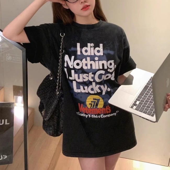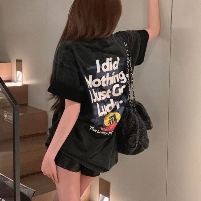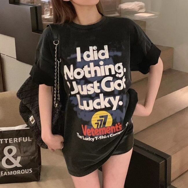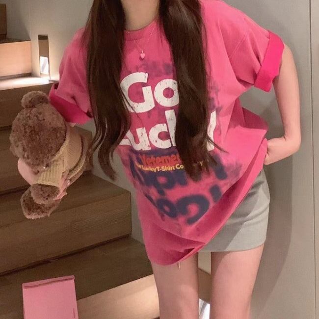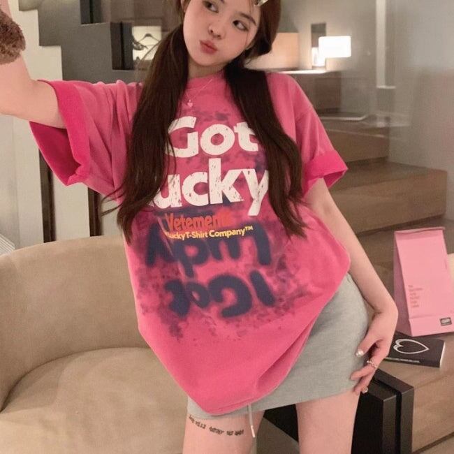 Tシャツ レディース 韓国 ロゴ グラフィックTシャツ ビッグシルエット 半袖 夏 トップス ストリート系女子