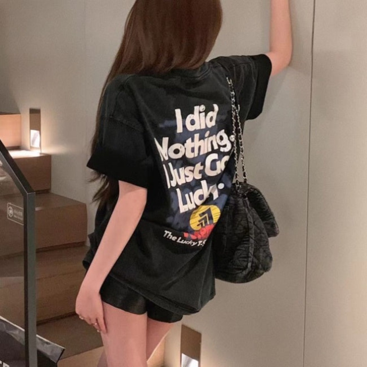 ビッグTシャツ バックシャン レディース 韓国 ファッション メンズライク おしゃれ ロゴトップス 黒T オーバーサイズ 派手め 夏トップス