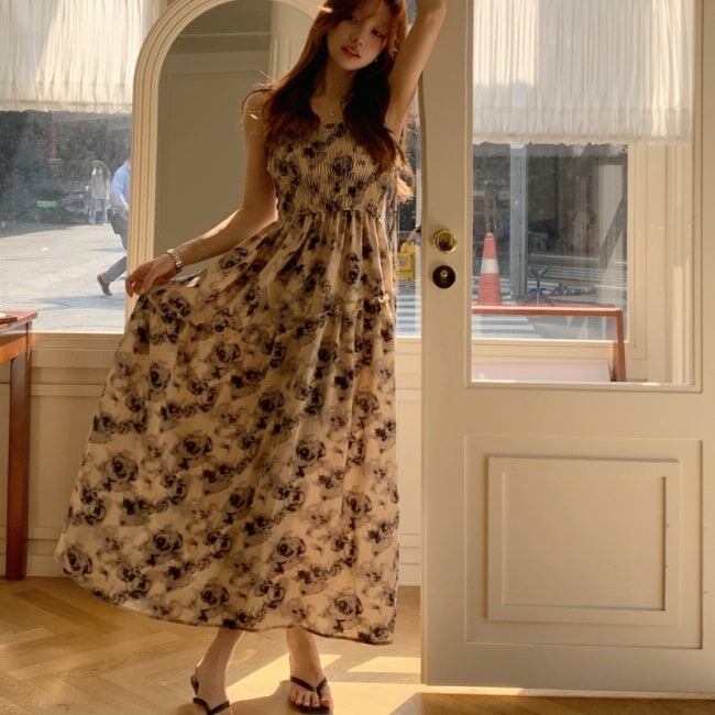 花柄 ロングワンピース ノースリーブ レディース 韓国 ワンピース エアリー Aライン フレア ロング ノースリーブ サマードレス 夏ワンピ