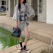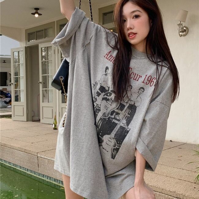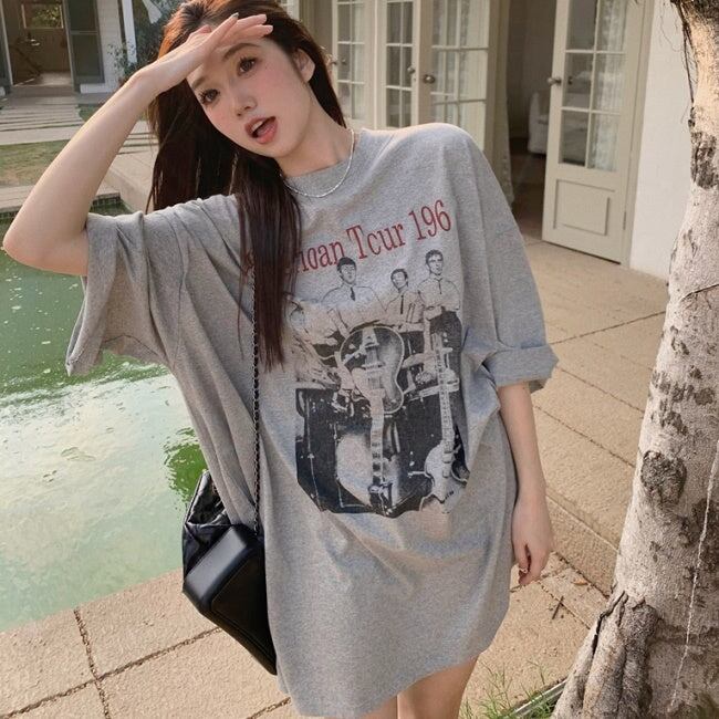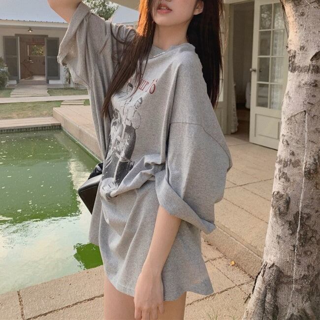 ビッグTシャツ レディース 韓国 ファッション ロゴ プリント グラフィックTシャツ 夏トップス