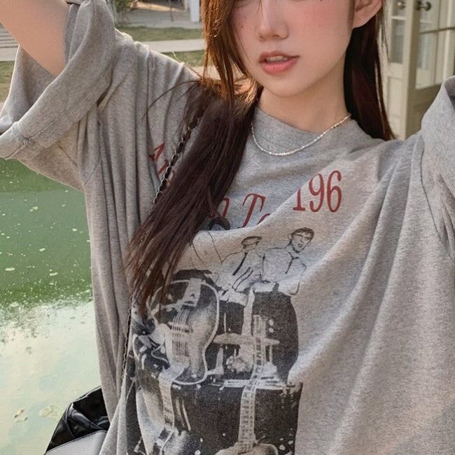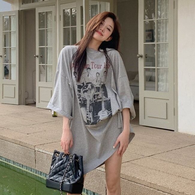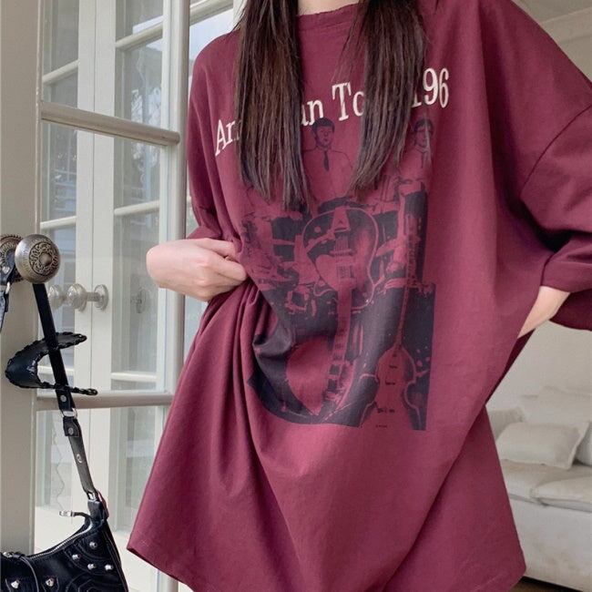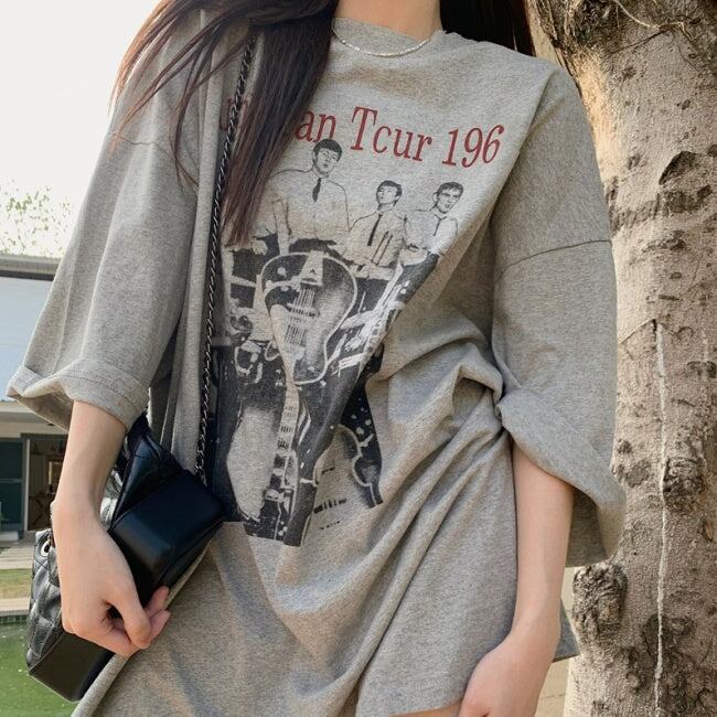 ビッグTシャツ レディース 韓国 ファッション ロング丈 ロゴ プリント 夏トップス ワイドフィット レトロ