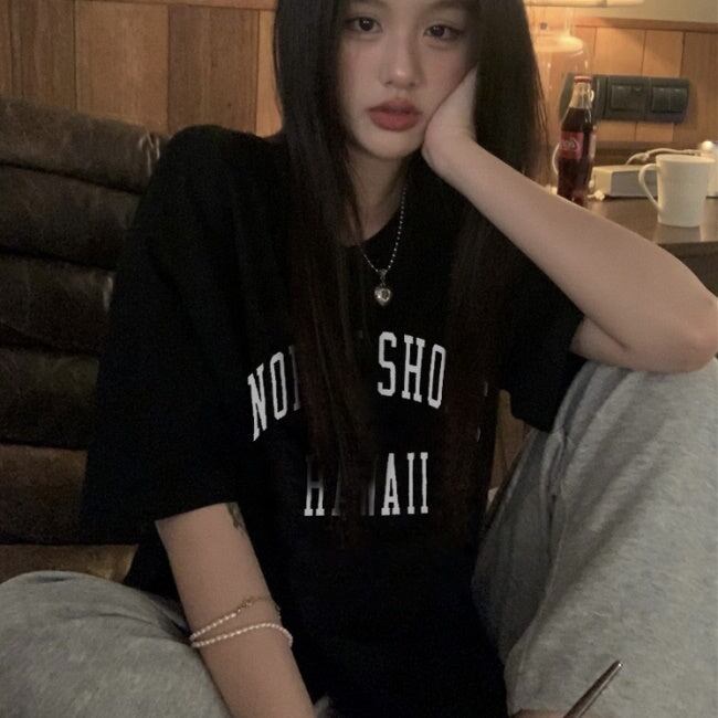 オーバーサイズ Tシャツ レディース 韓国 ファッション ビッグシルエット メンズライク ロゴプリント 黒Tシャツ 半袖 シンプル
