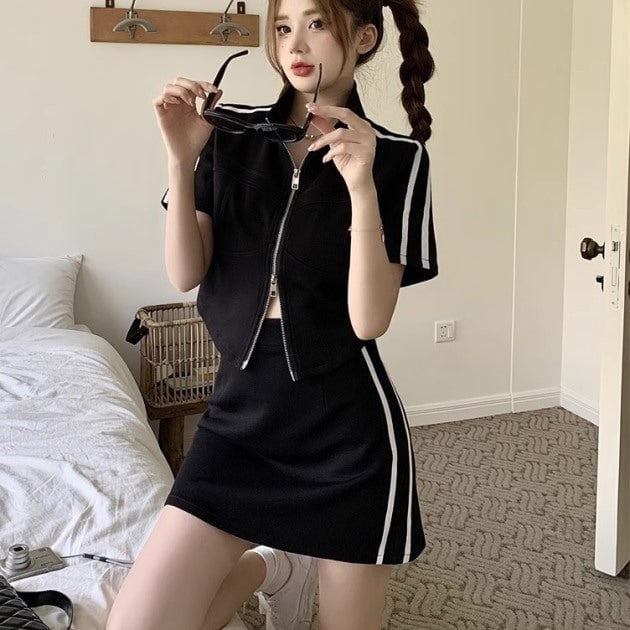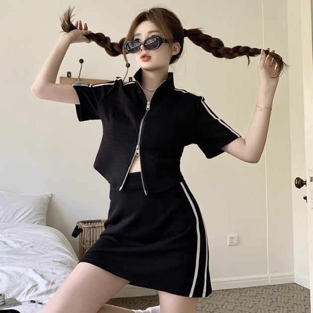 セットアップ レディース サイドライン ミニスカート レディース 韓国 ファッション 半袖 トラックジャケット 2ピースセット ミニスカート