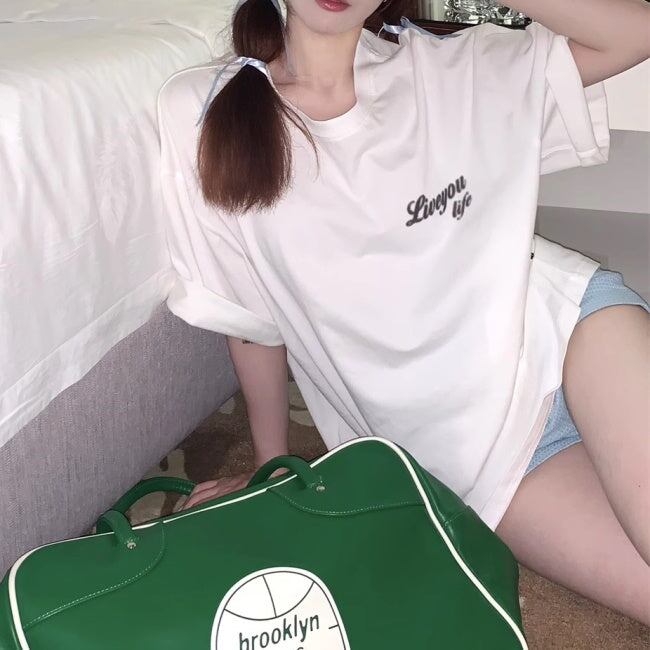 グラフィック Tシャツ レディース 韓国 ストリート バックロゴ ビッグシルエット T 夏トップス