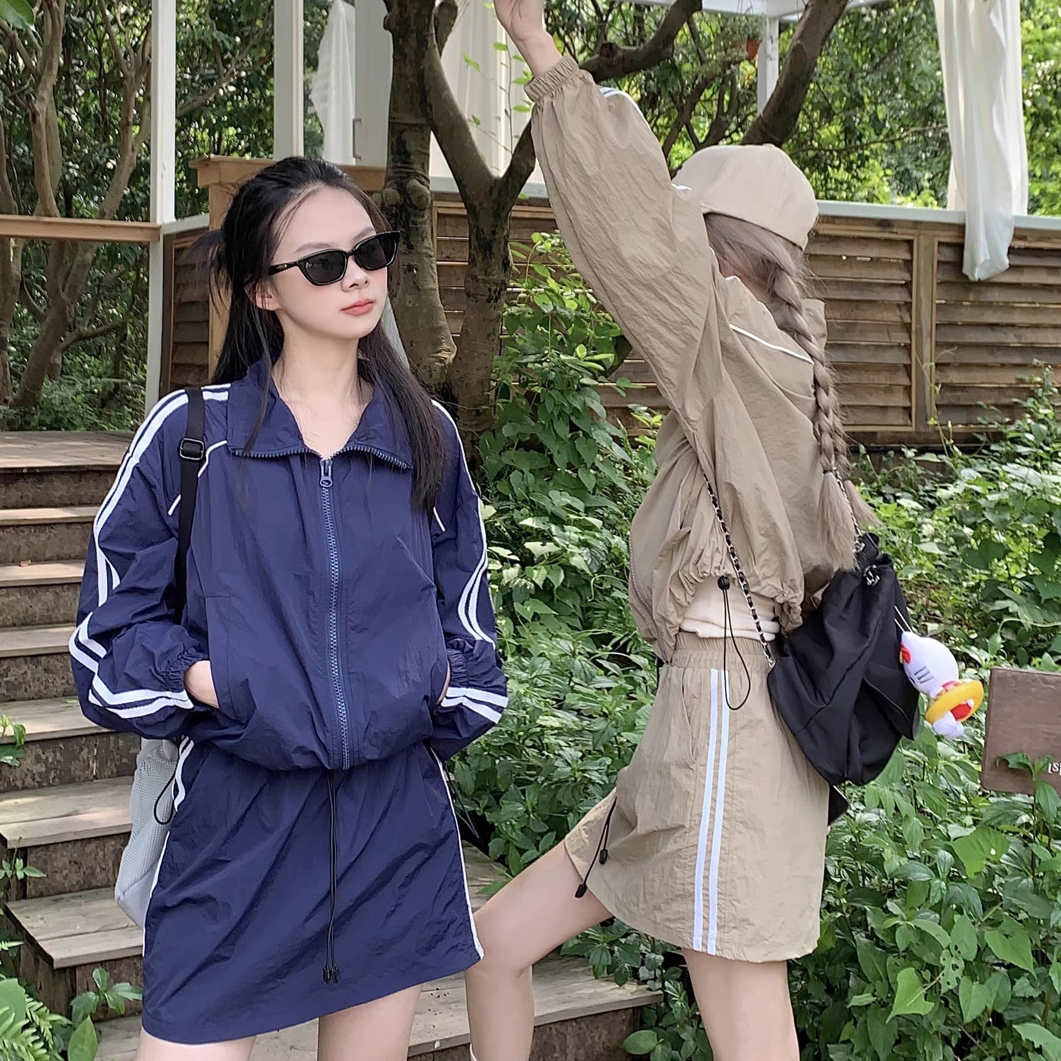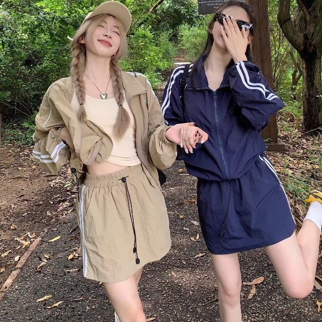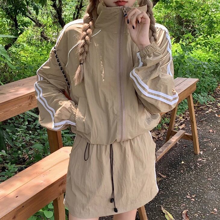 セットアップ ウィンドブレーカー ミニスカート レディース 韓国 ファッション サイドライン ジップジャケット ブルゾン