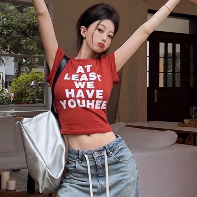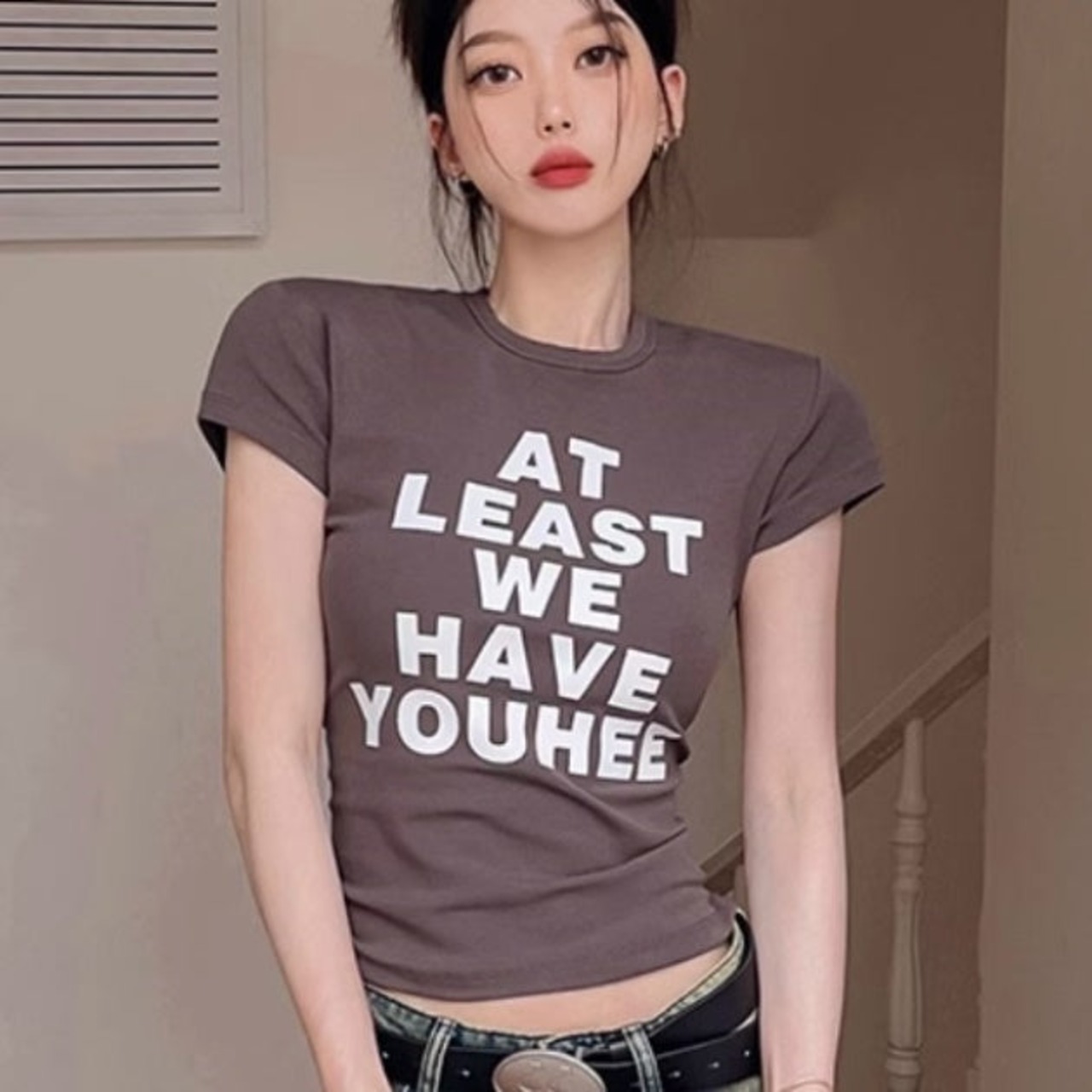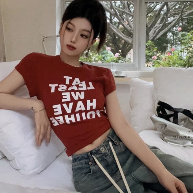 クロップド Tシャツ ロゴ グラフィック タイト T レディース 韓国 ファッション 半袖 夏トップス ロゴプリント レタープリント ショートスリーブ
