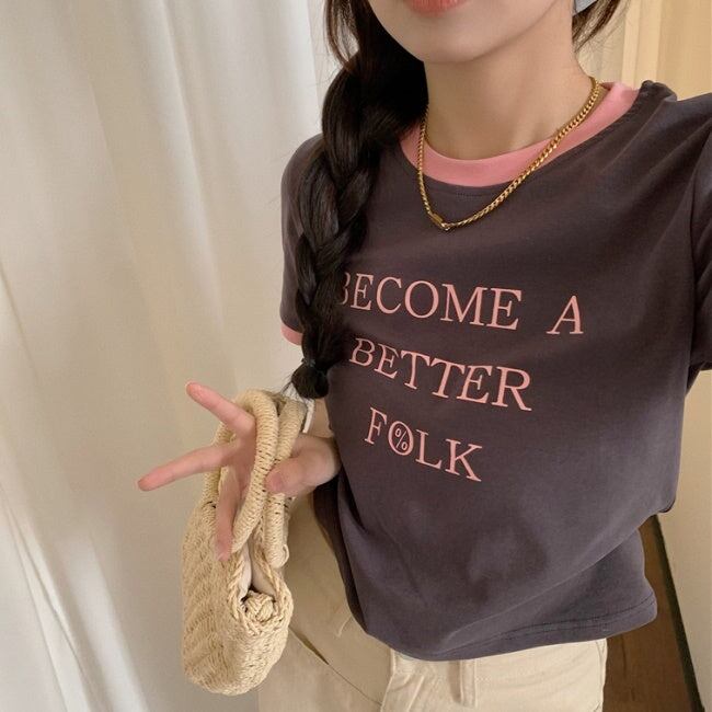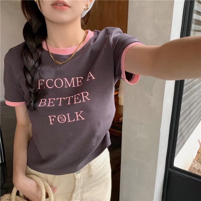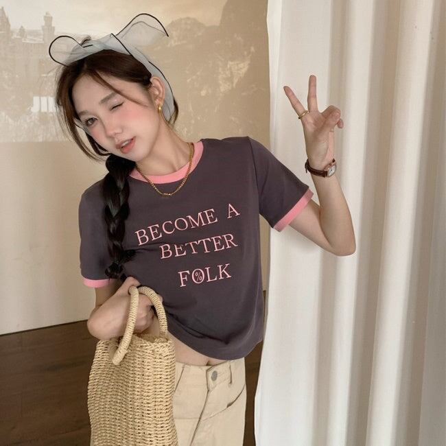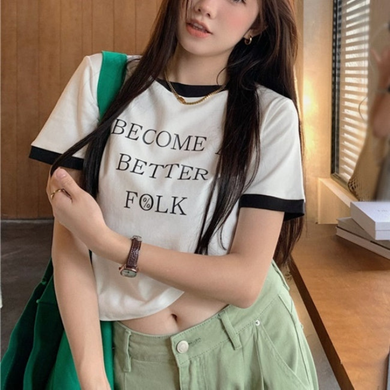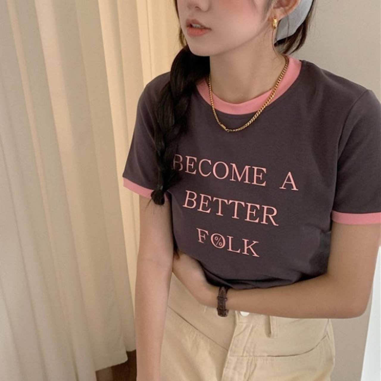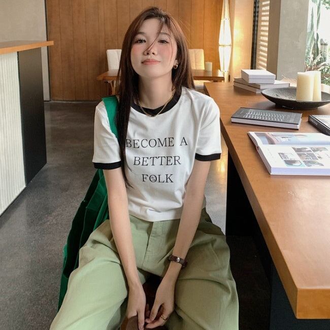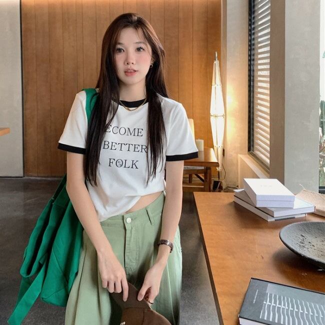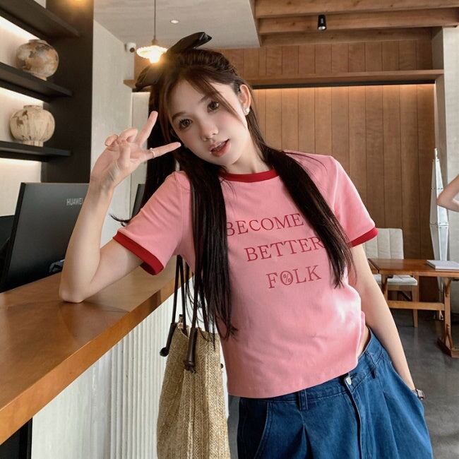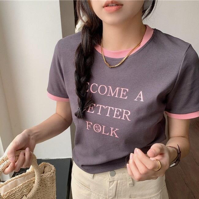 リンガー Tシャツ レディース 韓国 ファッション レター ロゴ プリント 夏トップス