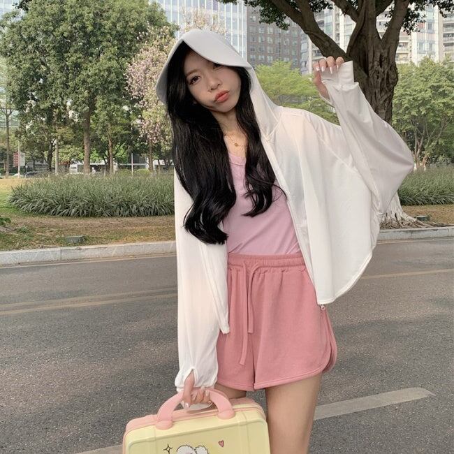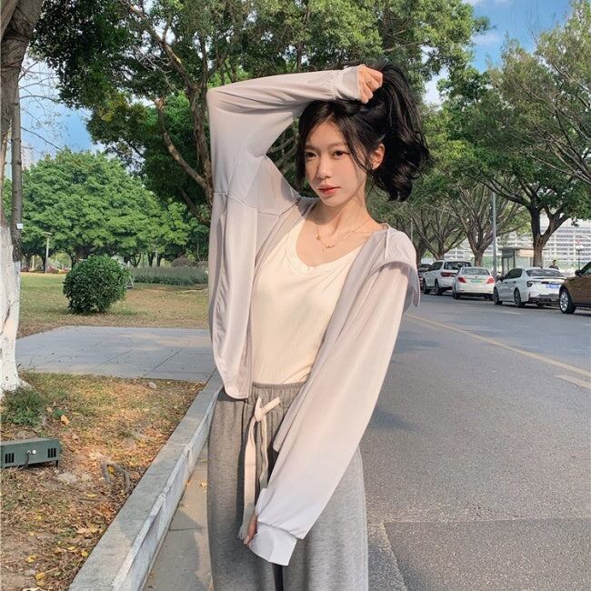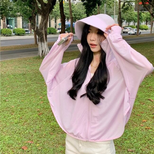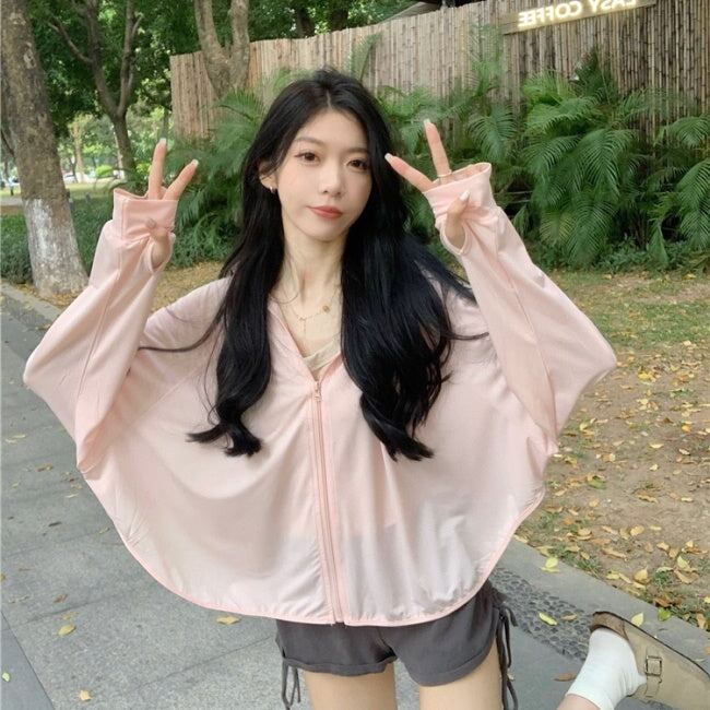サマーパーカー レディース 韓国 速乾 日焼け止め オーバー パーカー フード つば付き ドルマンスリーブ クロップド丈