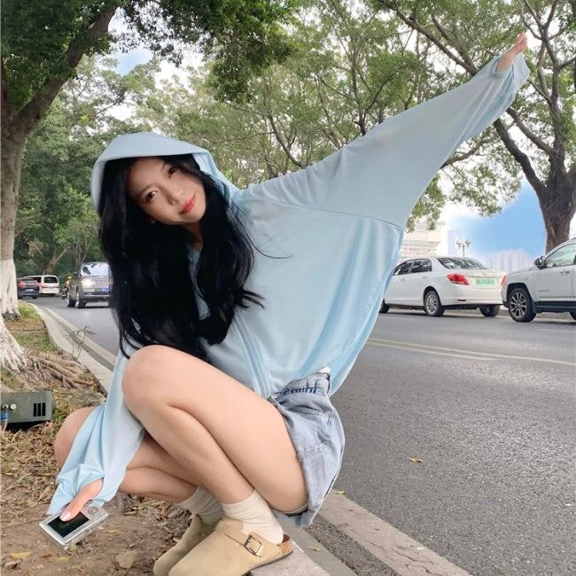 つばつきのフード♪日焼け防止のジップパーカー♪