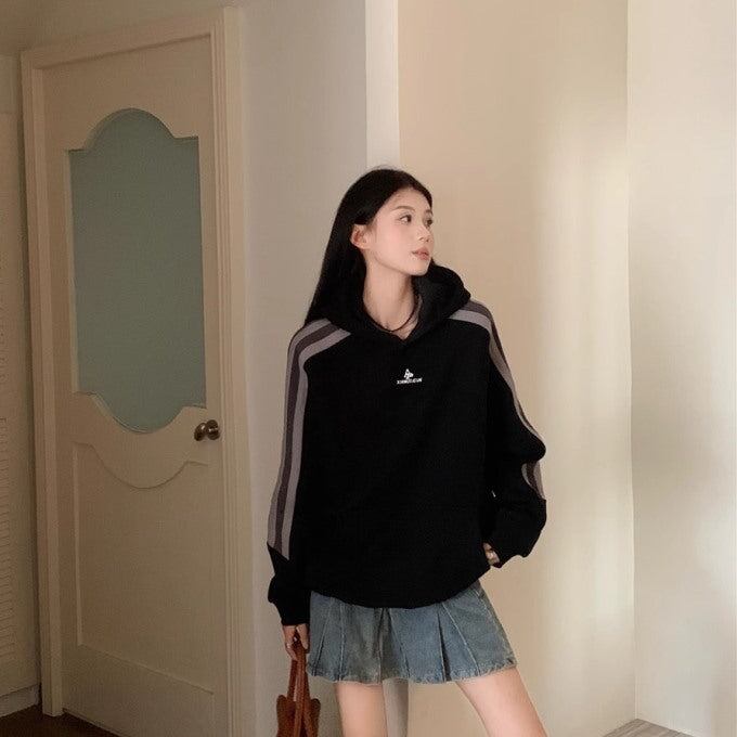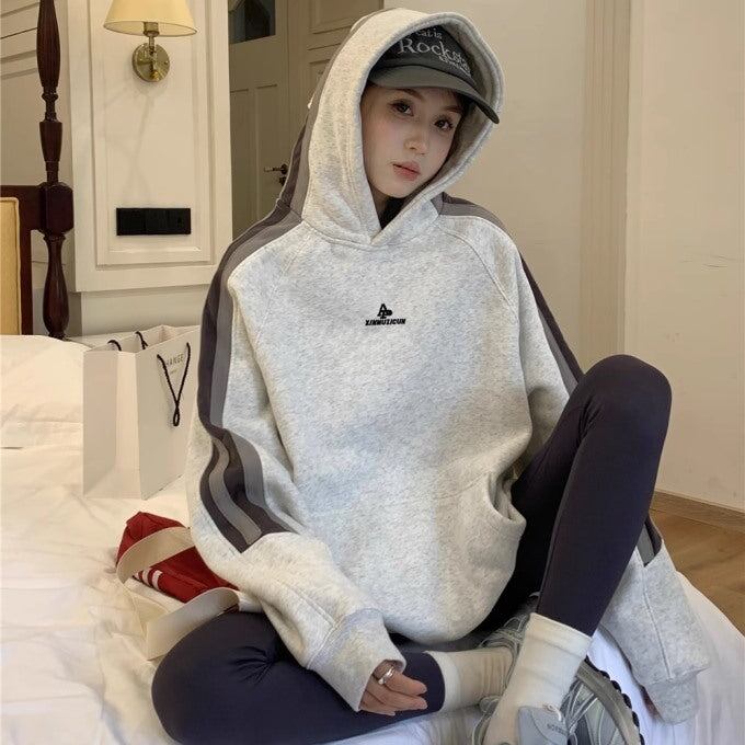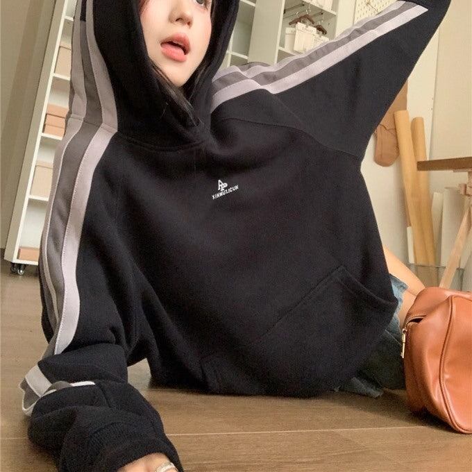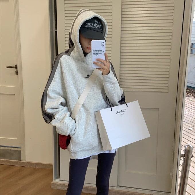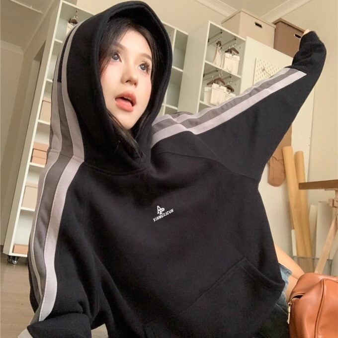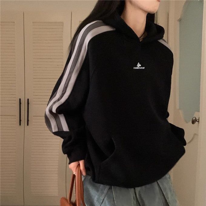 パーカー レディース サイドライン ビッグシルエット ラグラン プルオーバー 韓国 スポーツライン 秋冬 トップス