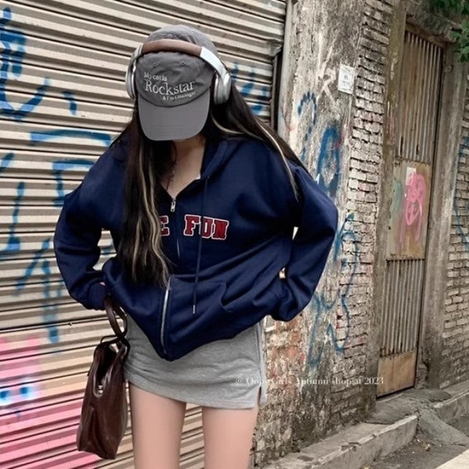 スウェットパーカー 長袖 レディース 韓国 ファッション ジップアップ ロゴパーカー 長袖 ネイビー ジャケット カジュアル フーディ 秋アウター