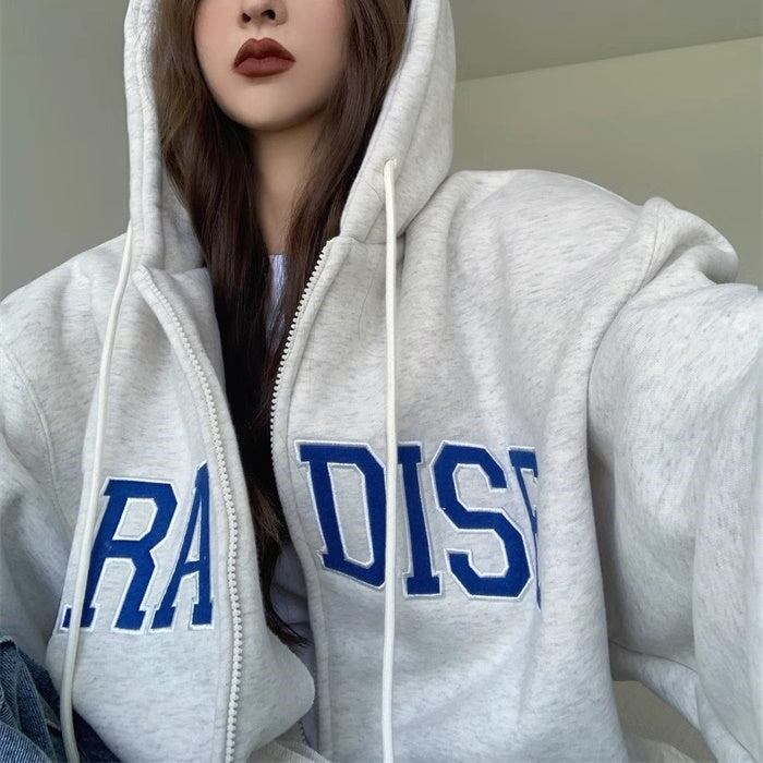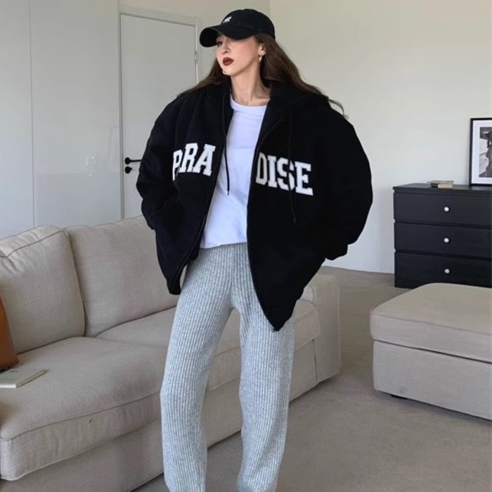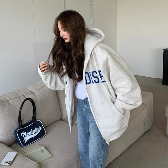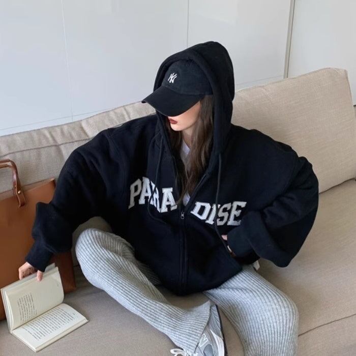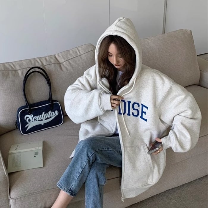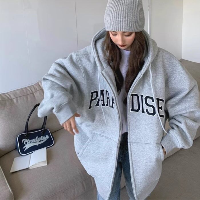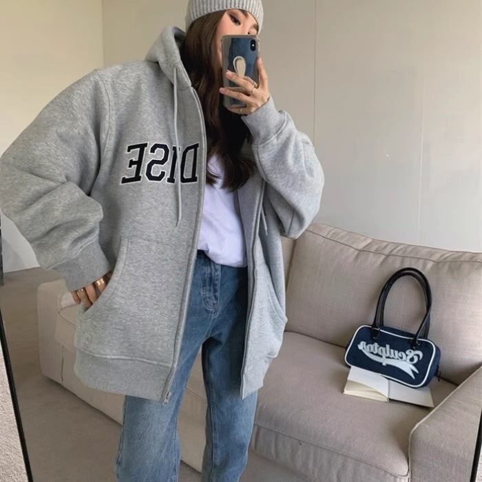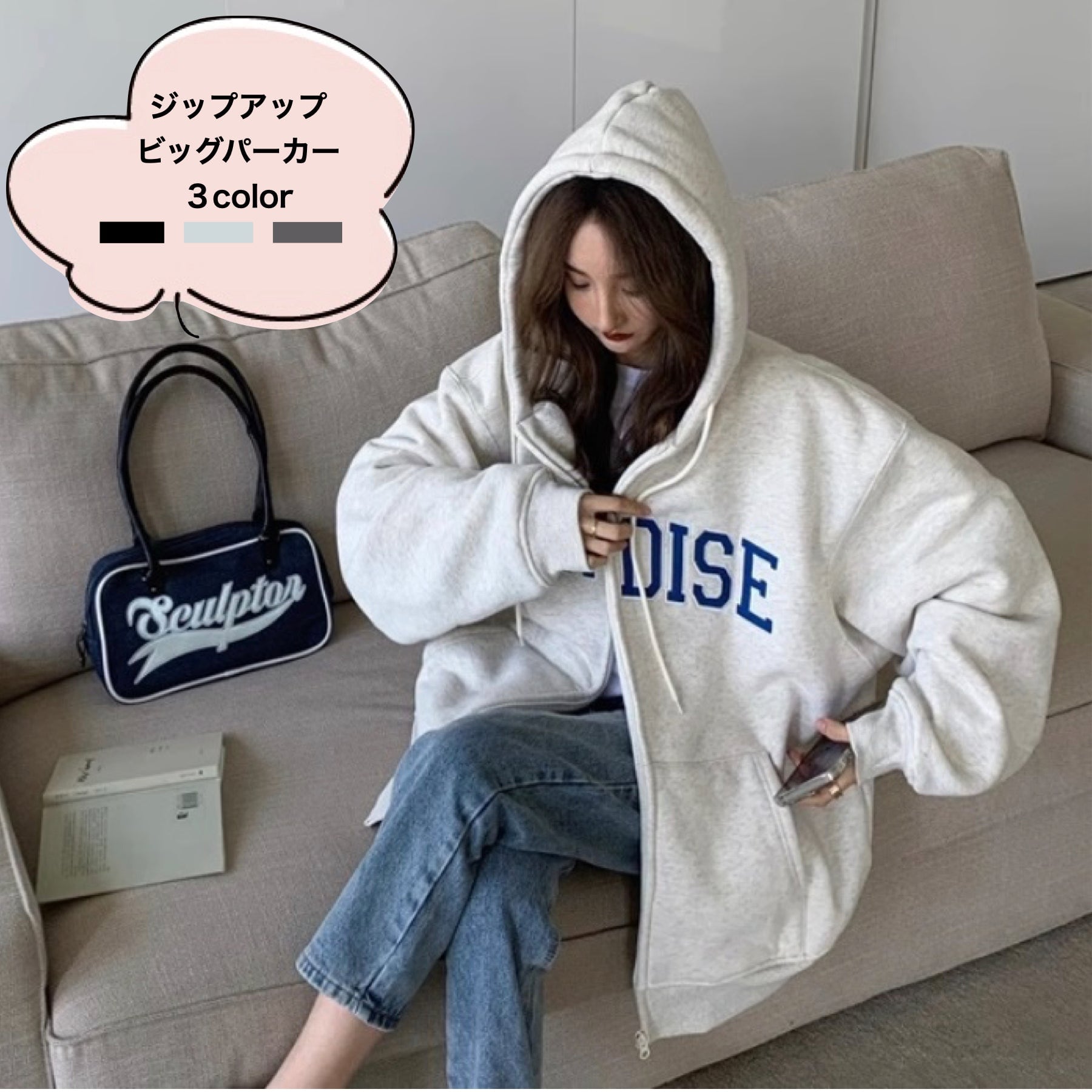 ロゴ ビッグパーカー レディース 韓国 ファッション ジップアップ パーカー 秋冬 ビッグシルエットアウター スウェット フーディー