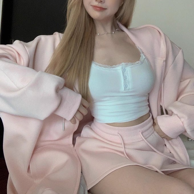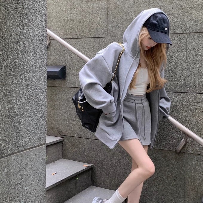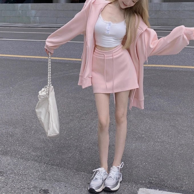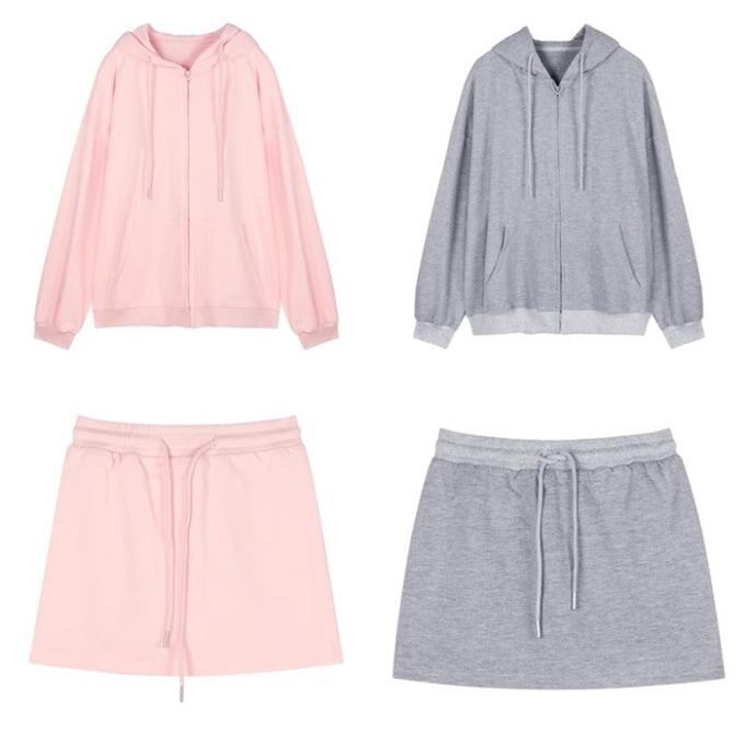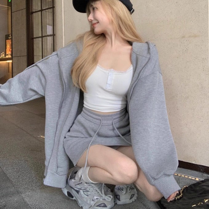 スウェット セットアップ レディース 韓国 ファッション ミニスカート ジップパーカー 台形スカート ミニスカート オーバーサイズ ビッグシルエット スウェット 上下2点セット