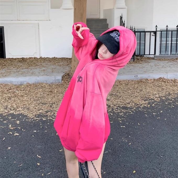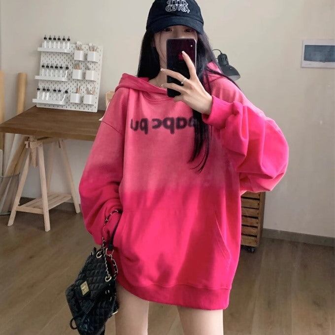 パーカースウェット プルオーバー レディース 韓国 ファッション グラデーション 裏起毛パーカー ロゴ おしゃれ オーバーサイズ 男女兼用