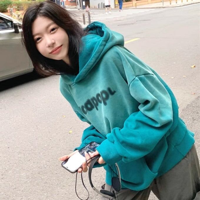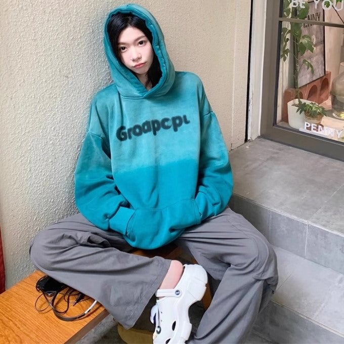 グラデーション スウェット パーカー プルオーバー レディース 韓国 ファッション 裏起毛 ロゴパーカー ロゴグラフィック オーバーサイズ フーディー