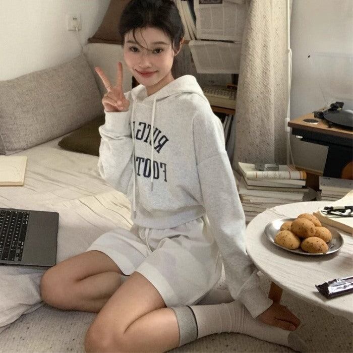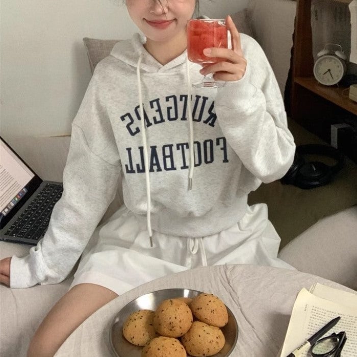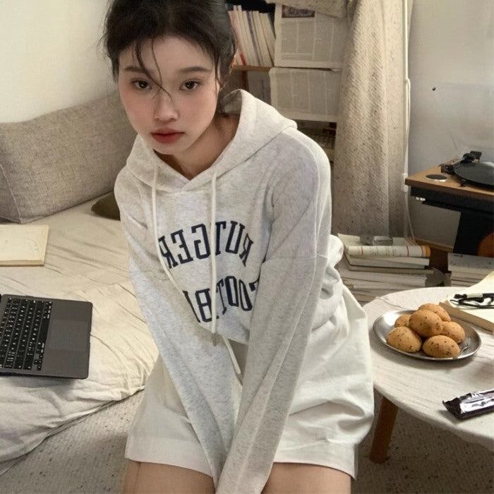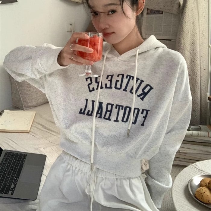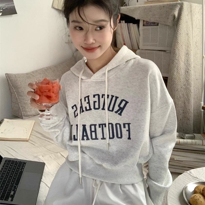 クロップド ロゴ パーカー レディース 韓国 グレー スウェット プルオーバー フーディー 秋冬 トップス ヘザーグレー