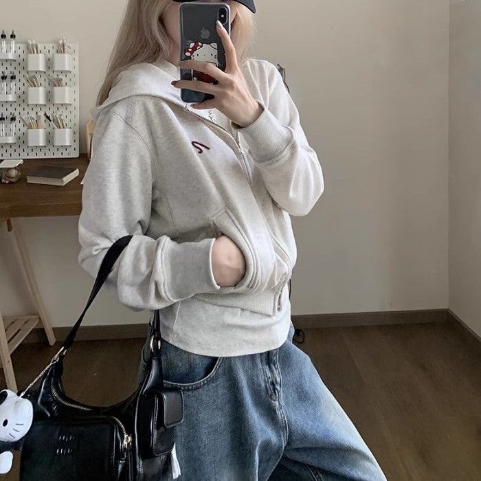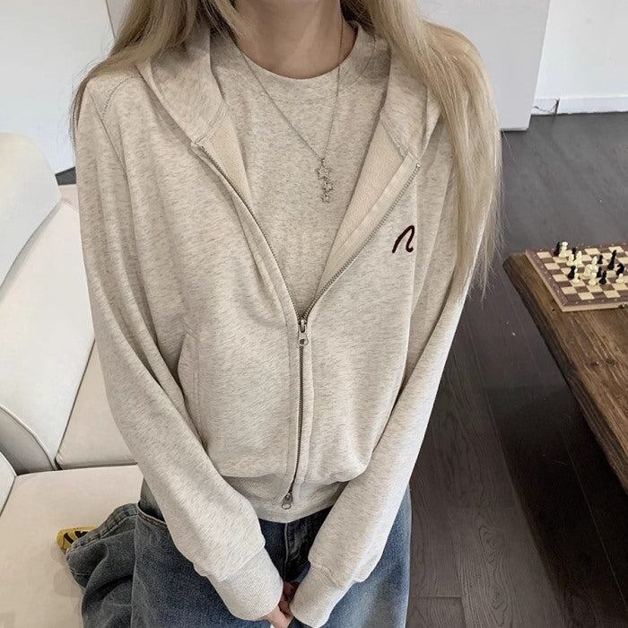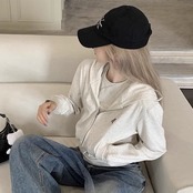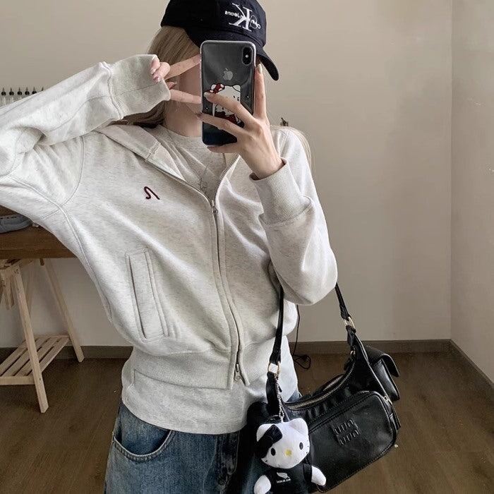 クロップド パーカー レディース 韓国 ファッション ワンポイント ダブルジップパーカー スウェット トップス 秋冬