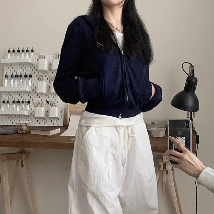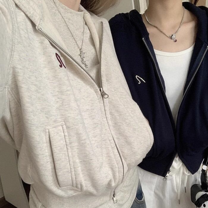 クロップドパーカー レディース 韓国 ファッション ワンポイント ダブルジップ ジップパーカー 長袖 スウェット トップス 秋冬 パーカ
