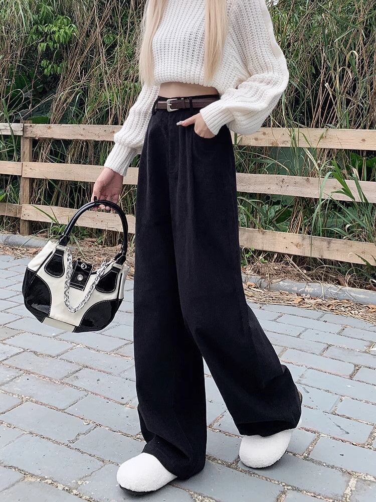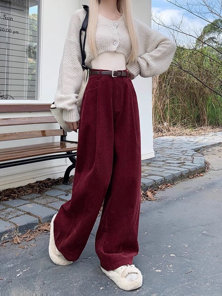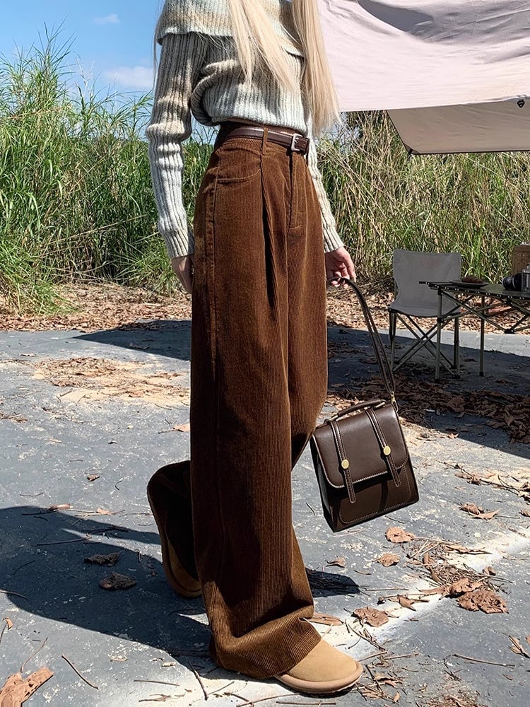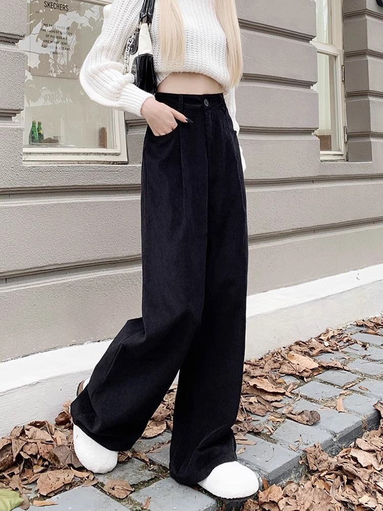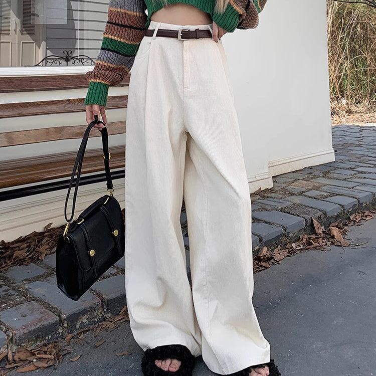 ワイドパンツ コーデュロイ レディース 韓国 ファッション ワイドシルエット 冬パンツ タックパンツ