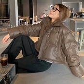 ダウンジャケット レディース 韓国 ファッション クロップド丈 Aライン ボリューム襟 ショート丈 防寒アウター 冬
