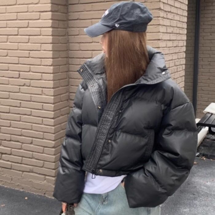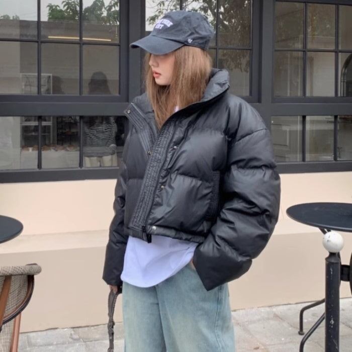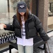 ショート エコダウン ジャケット レディース 韓国 ファッション クロップド丈 ボリューム ショートダウン 防寒アウター 冬