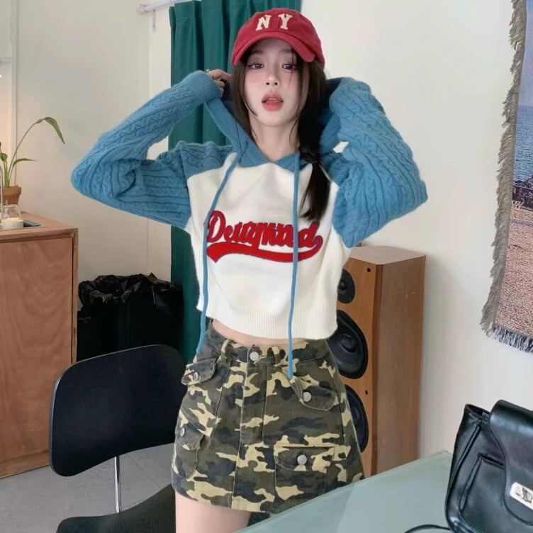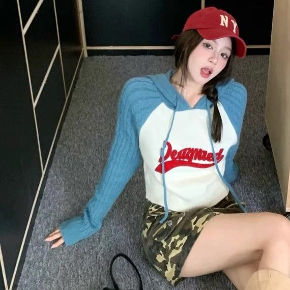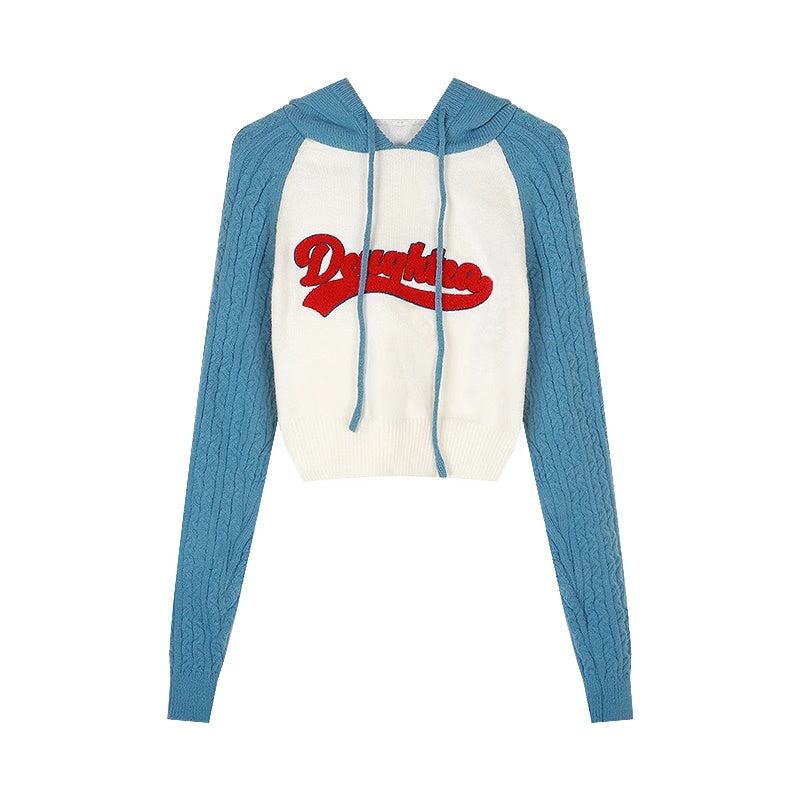 ニット パーカー レディース 韓国 ファッション 切替 バイカラー ロゴ フードニット ガーリー かわいい