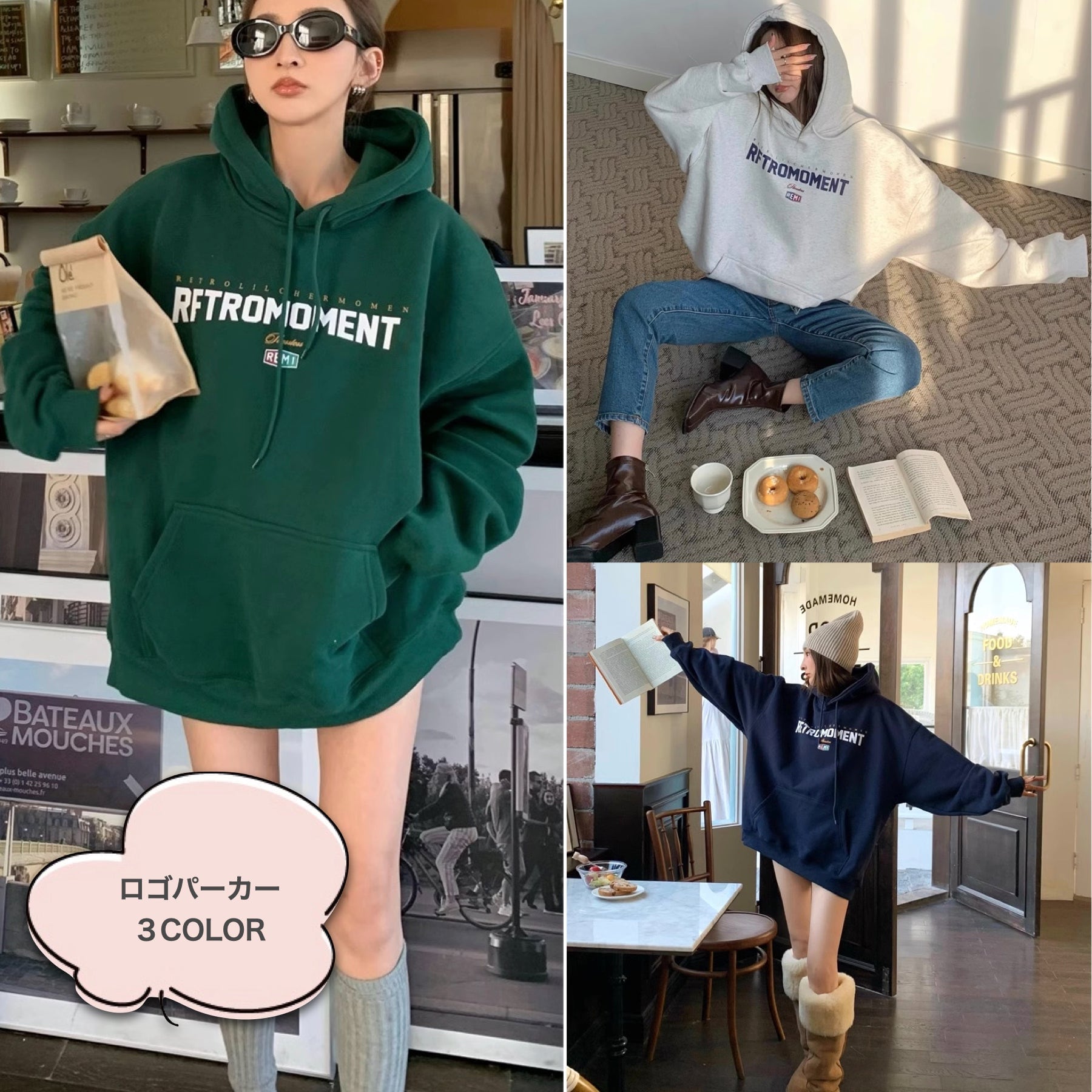 ロゴ パーカー レディース 韓国 ファッション ビッグシルエット バックロゴ オーバーサイズ プルオーバー スウェット パーカー