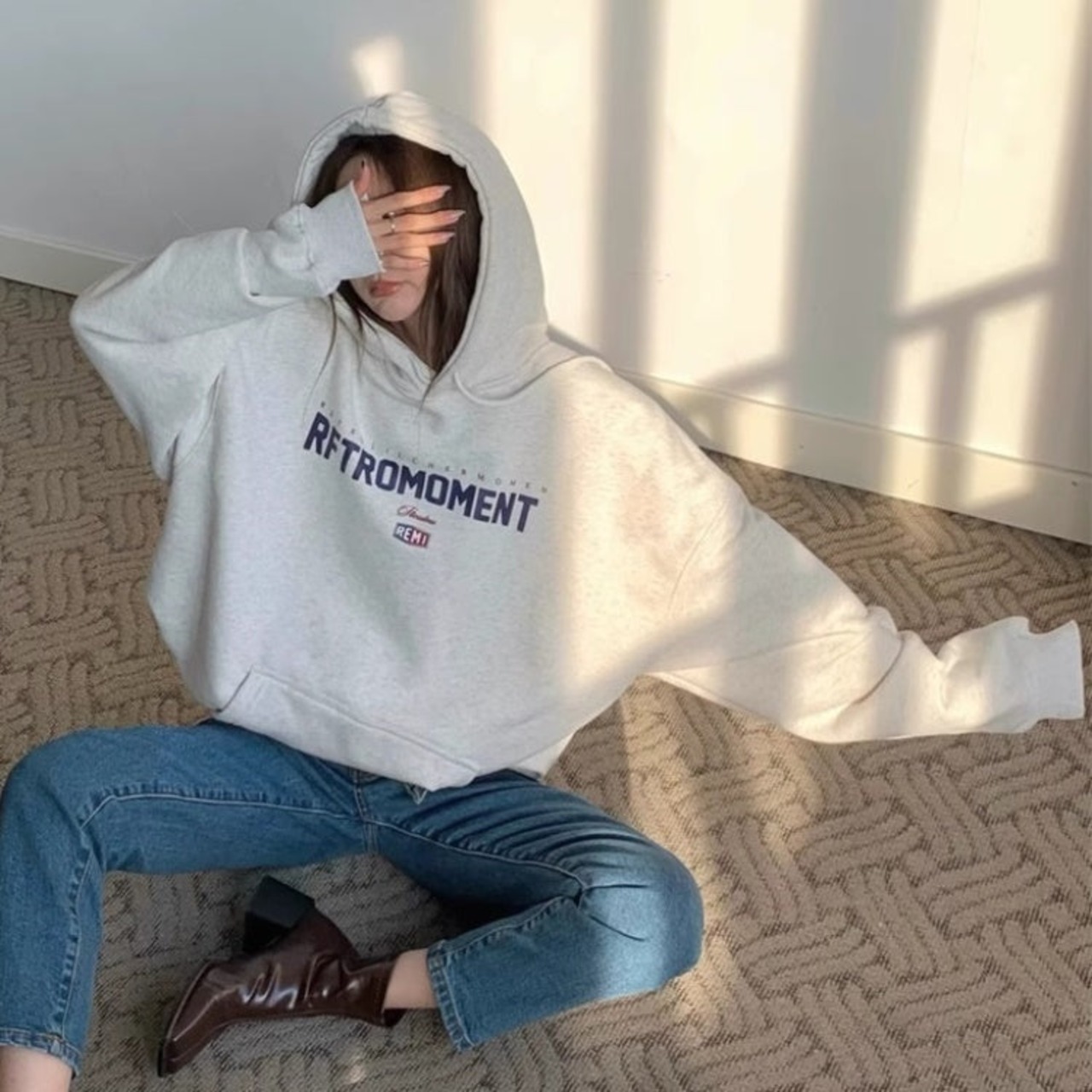 スウェットパーカー レディース 韓国 ファッション ビッグシルエット バックロゴ オーバーサイズ プルオーバー