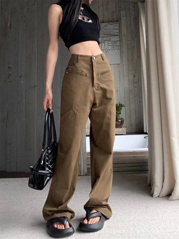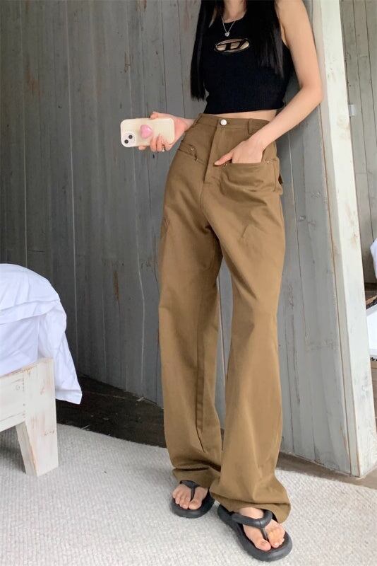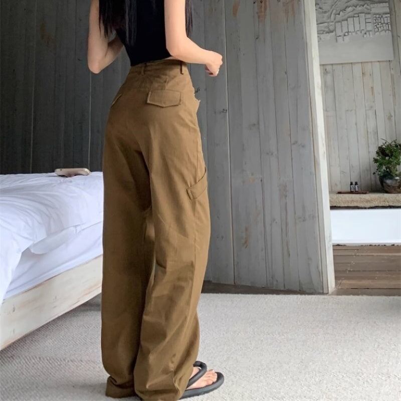 カードパンツ レディース 韓国 ファッション サイドポケット ワークパンツ カーキ ミリタリー スリムストレート ロングパンツ 秋冬 大人カジュアル