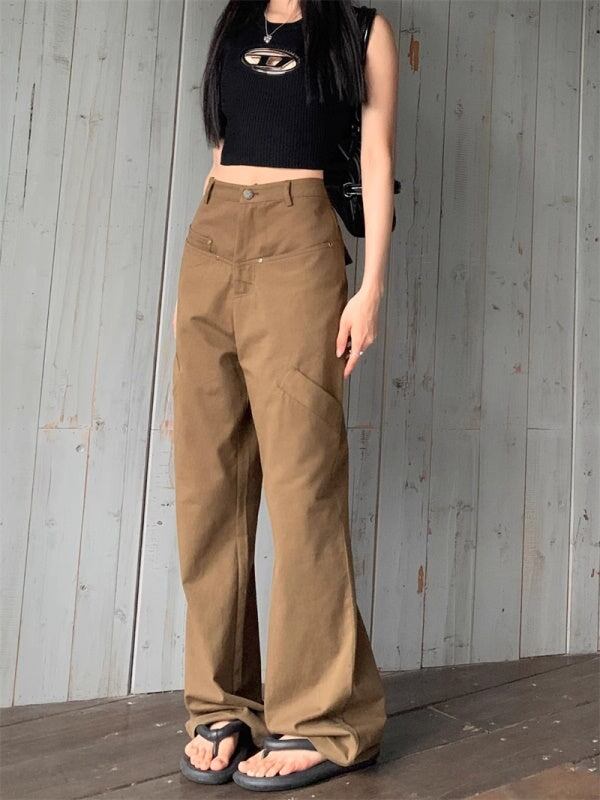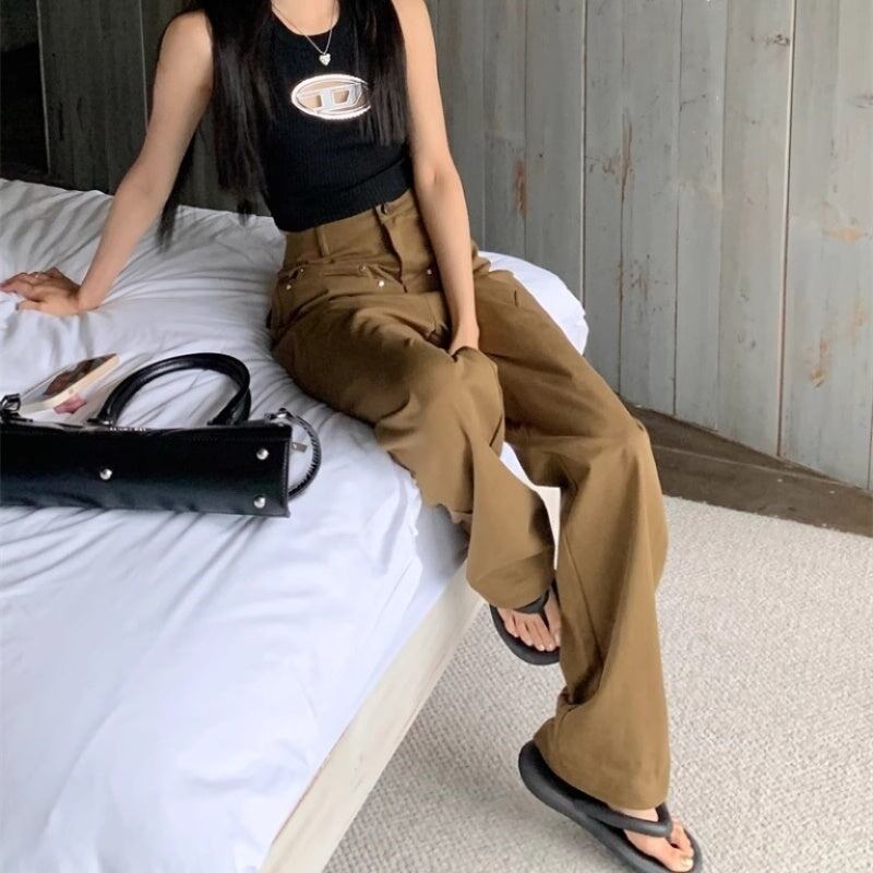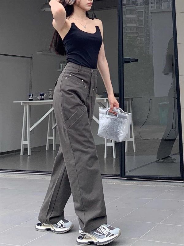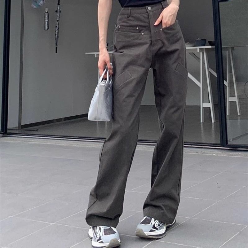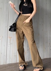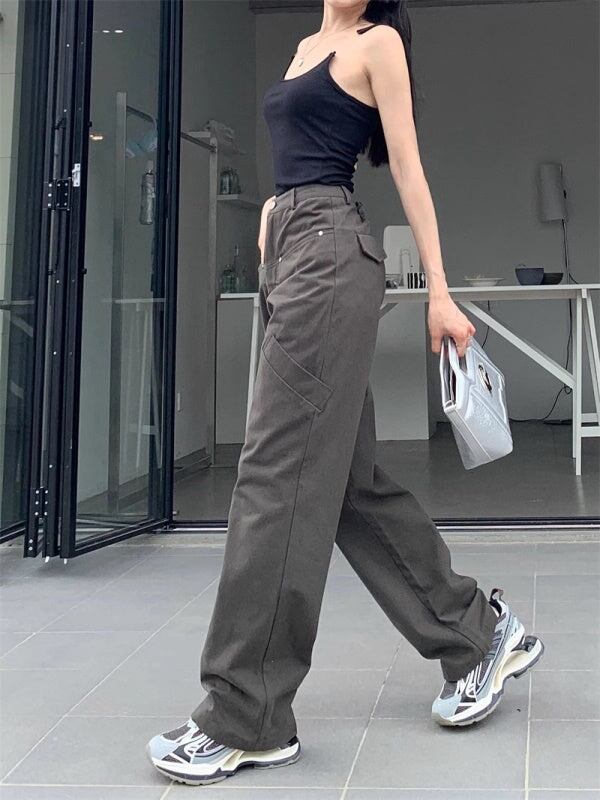 カーゴ ワークパンツ レディース 韓国 ファッション サイドポケット ミリタリー ストレート パンツ