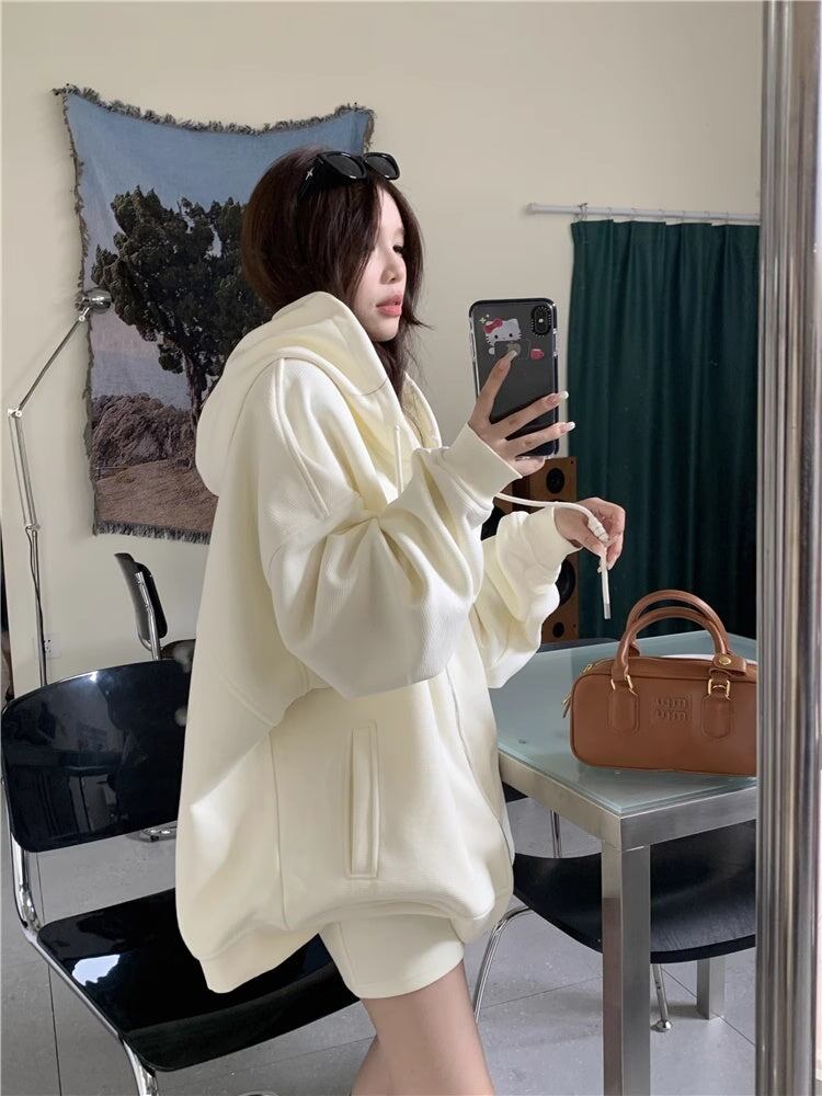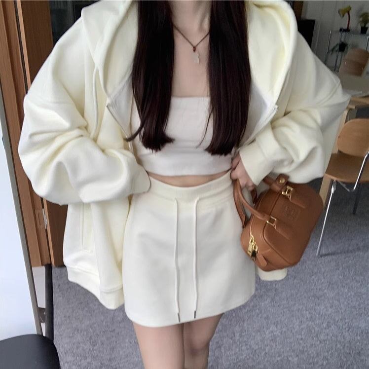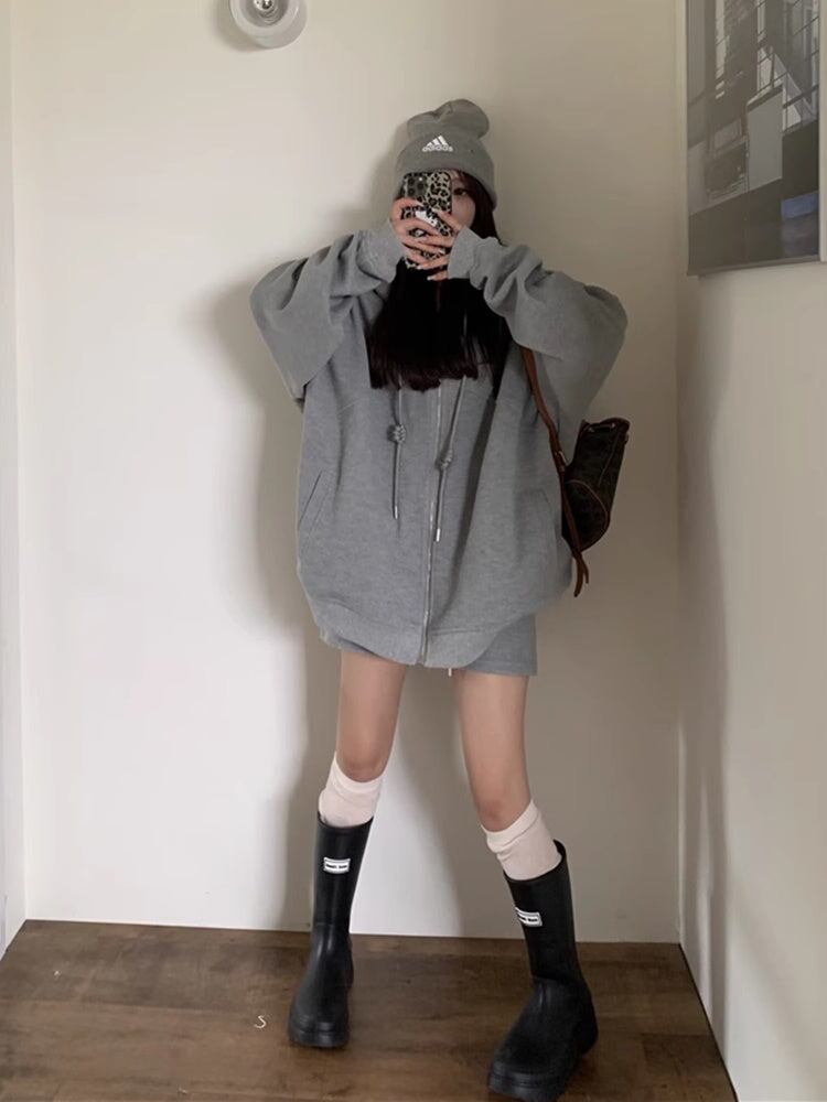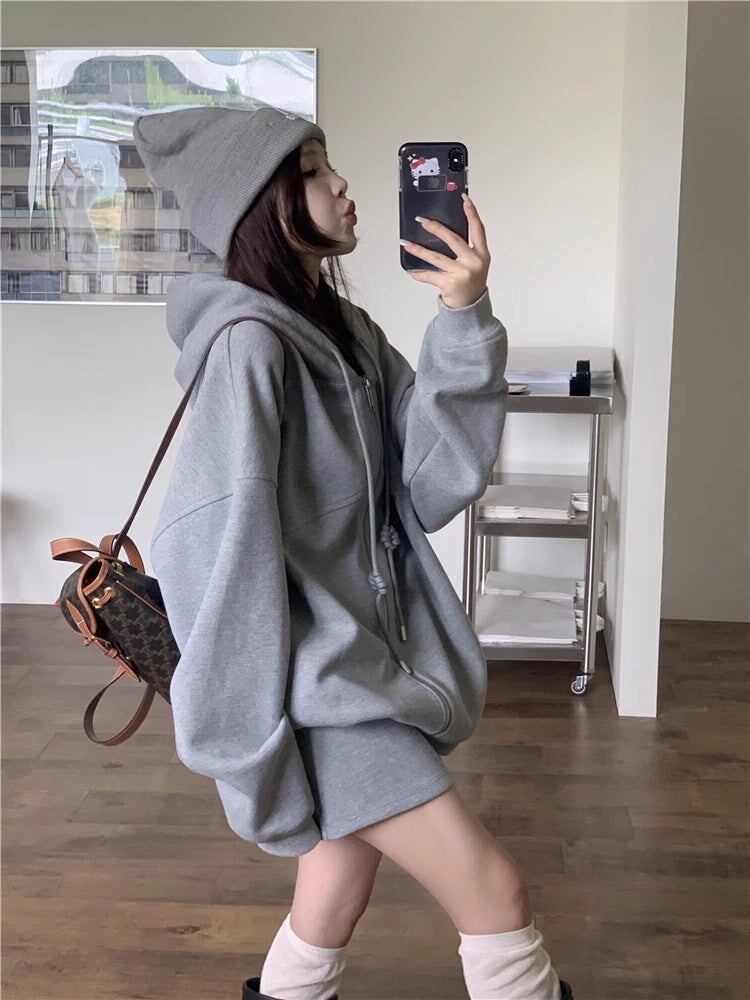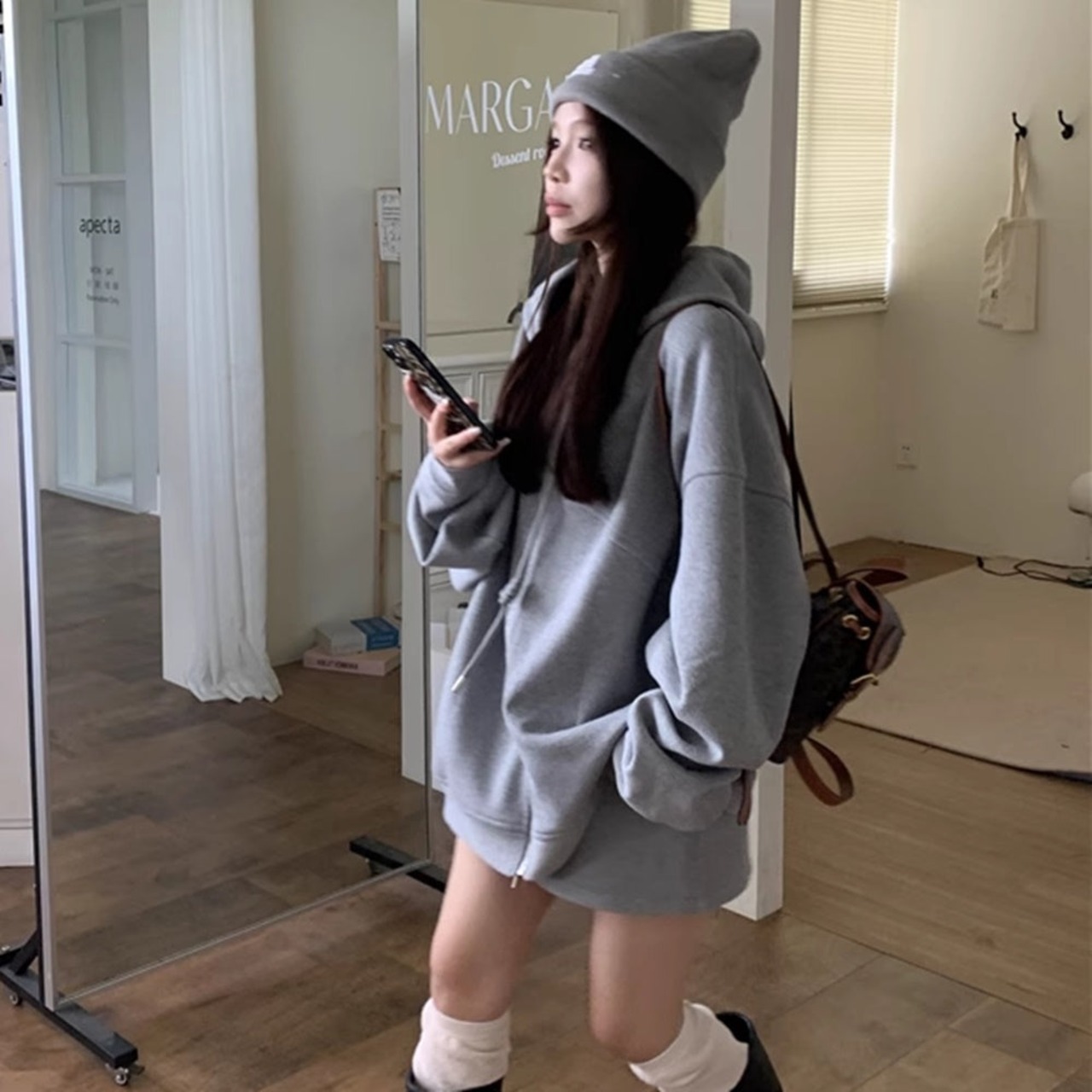 スウェット セットアップ レディース 韓国 ファッション ビッグパーカー ジップアップ ミニタイトスカート