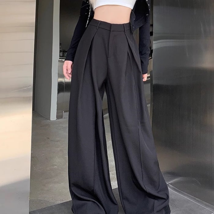 タック ワイドパンツ レディース 韓国 ファッション タックパンツ 秋冬 ボリュームパンツ