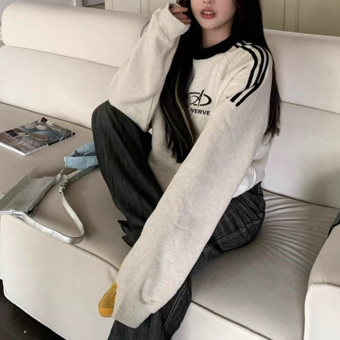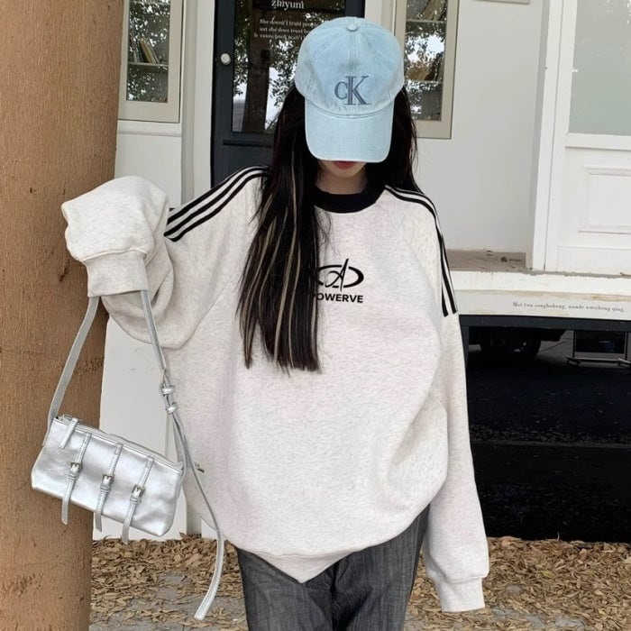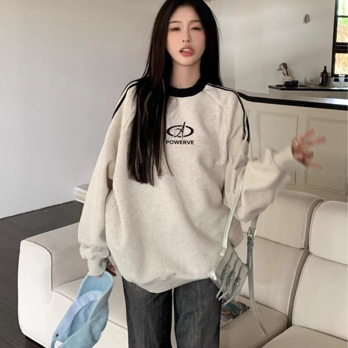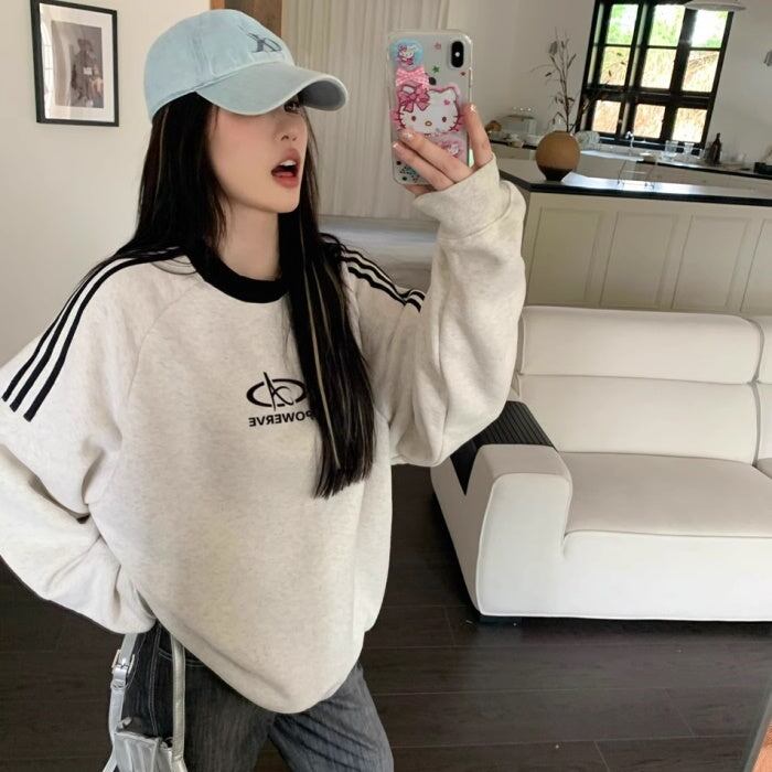 スウェットトレーナー レディース 韓国 ファッション ロゴマーク ライン トレーナー スウェットトップ オーバーサイズ おしゃれ 秋冬トップ メンズライク